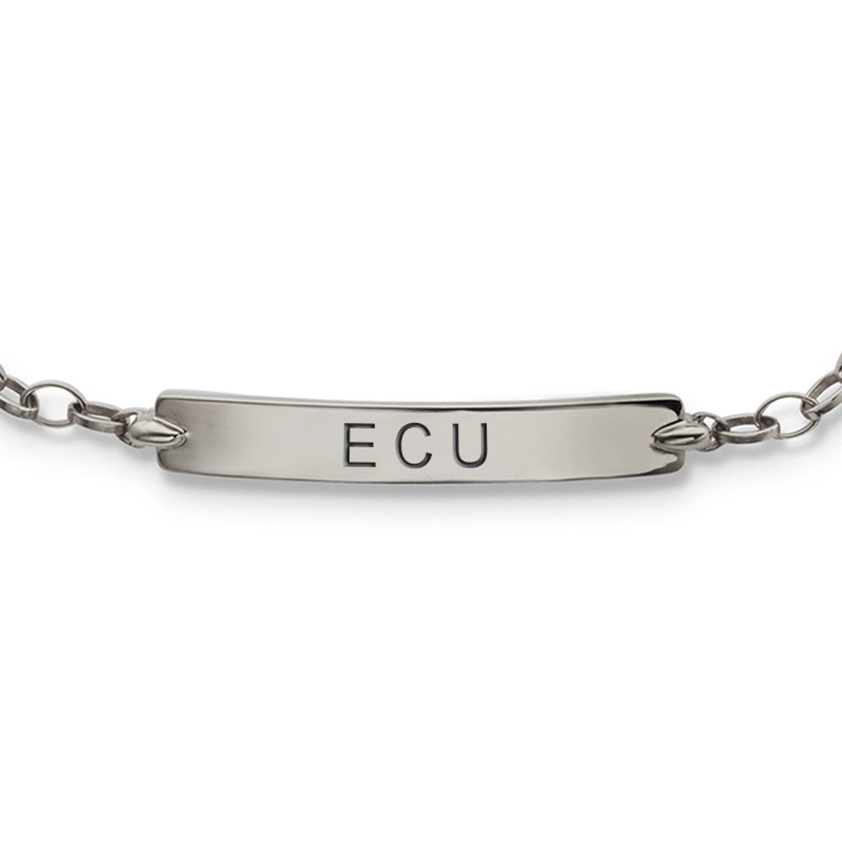 A feminine, delicate bracelet in sterling silver as appropriate for evening wear as day. "ECU" engraved on slim banner accentuates the elegance.