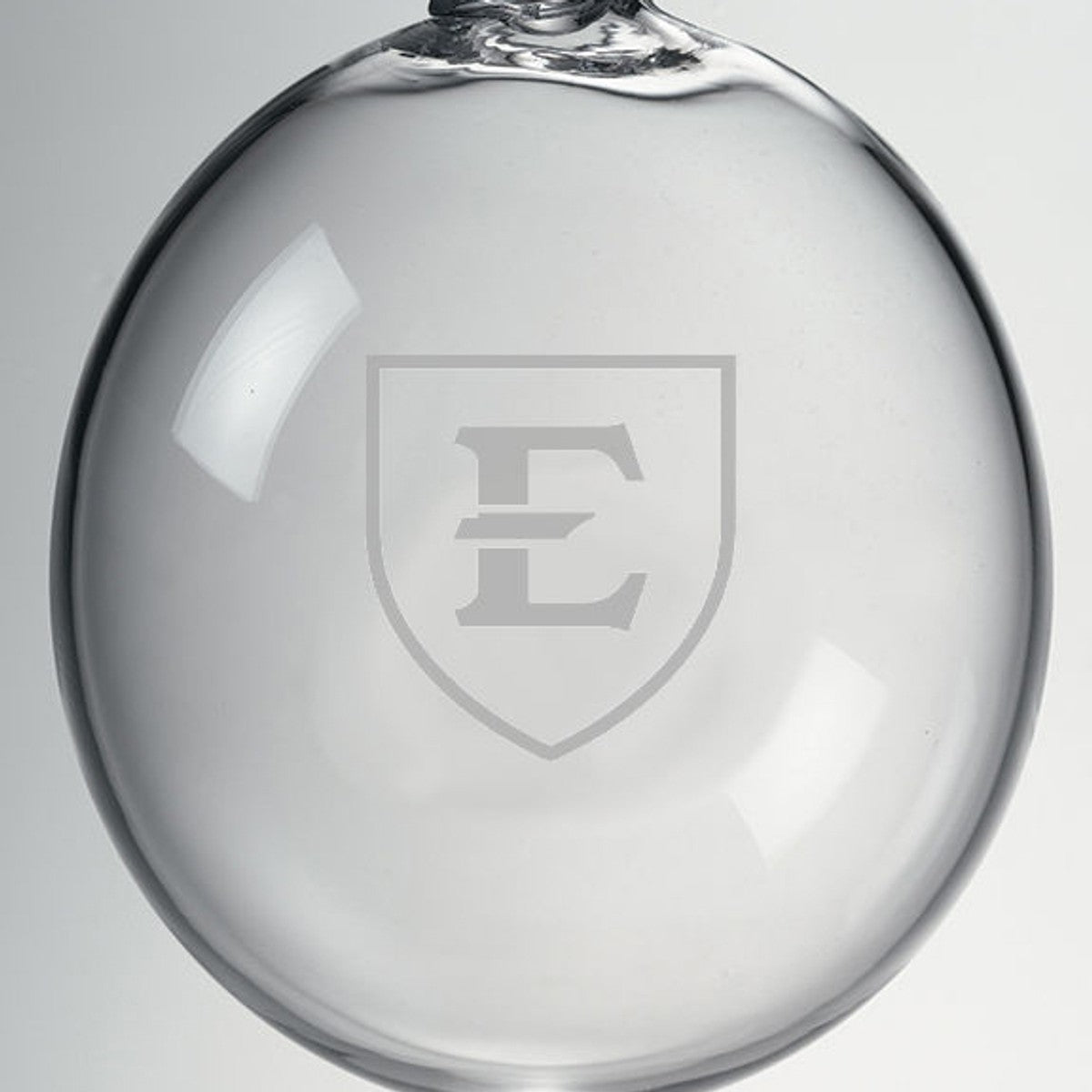 The East Tennessee State University Glass Ornament, beautifully engraved with the East Tennessee State logo, will bring East Tennessee State pride to your holiday decor.