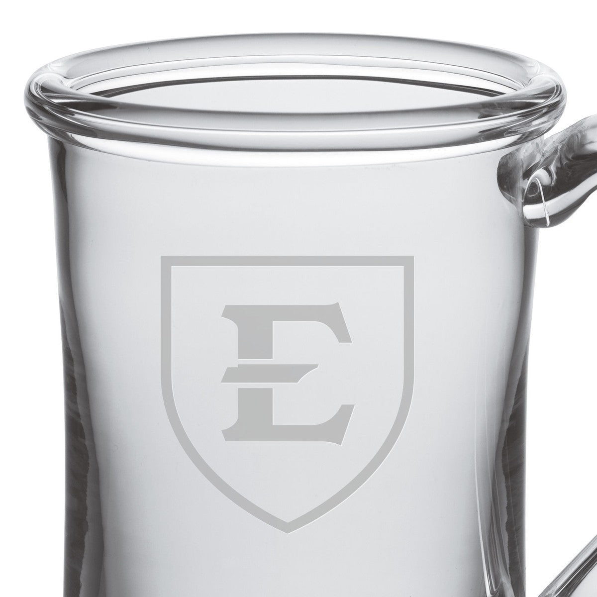 The East Tennessee State Glass Tankard is an ideal choice if you're looking for a versatile glass. The enchantingly curved glass handle will help ensure that you don't spill a drop. The Glass Tankard has the East Tennessee State logo handsomely etched on the hand-blown glass.