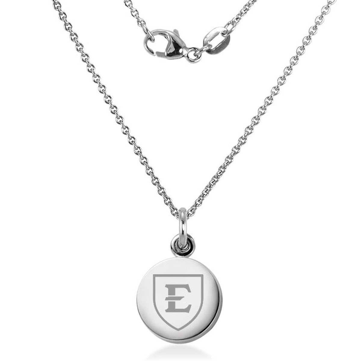 East Tennessee State University sterling silver necklace and sterling silver charm, perfect for any proud East Tennessee State alumnus or fan. Personalize the charm with initials or graduation year for a custom gift or keepsake.