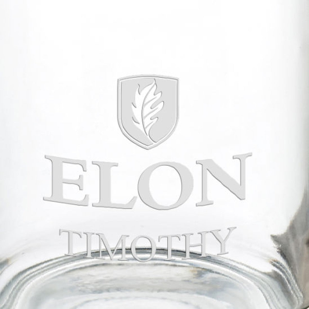 The Elon glass coffee mug is deep-etched with the Elon University logo. Generously proportioned 13 oz glasses are a pleasure to hold. Your name can be added under the logo for free.