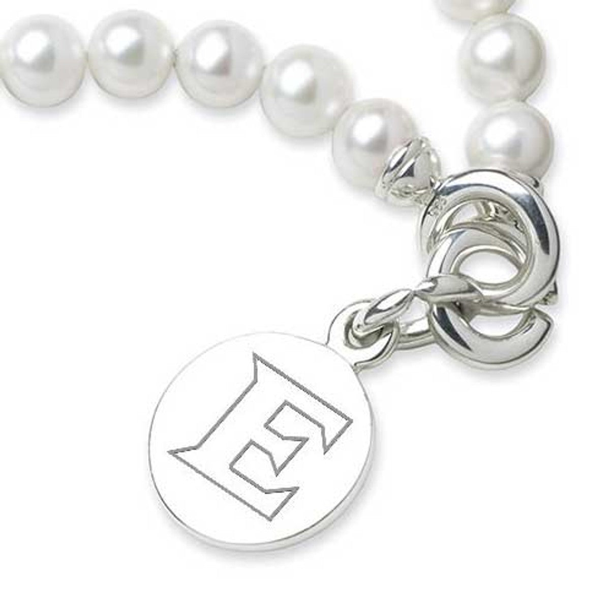 Elon University pearl bracelet and sterling silver Elon charm features the Elon logo delicately engraved on front and interlocking "C" clasp.