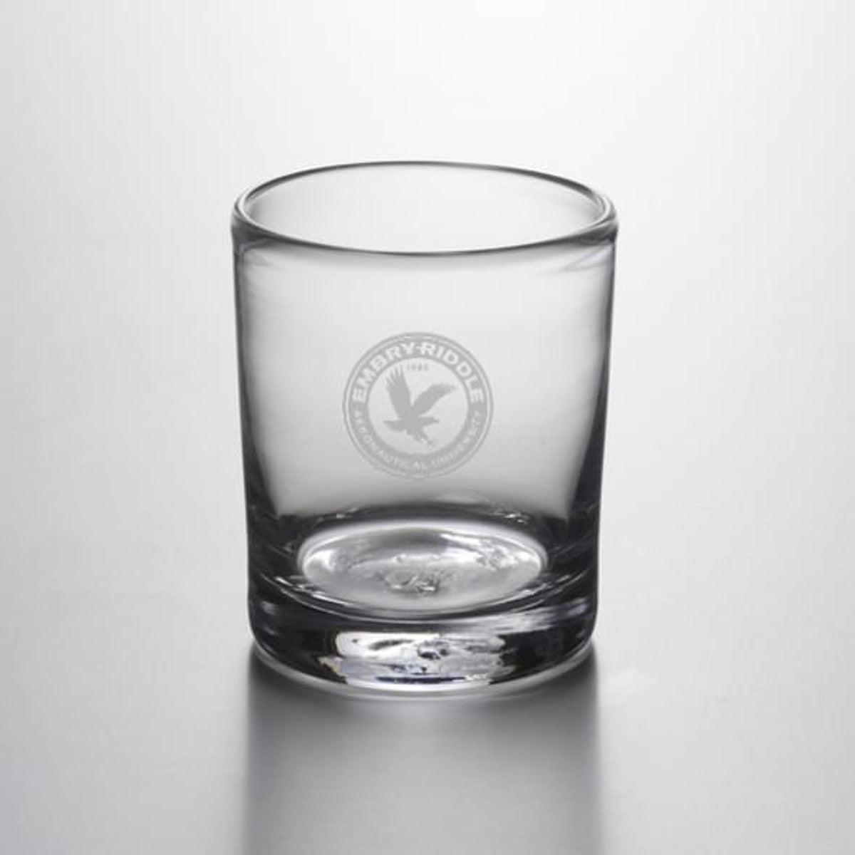 The ERAU Double Old Fashioned Glass features the Embry-Riddle Logo etched on the hand-blown glass. From its narrowly flared lip to its sleek, cylindrical body and sturdy, solid base, this glass epitomizes sophistication.