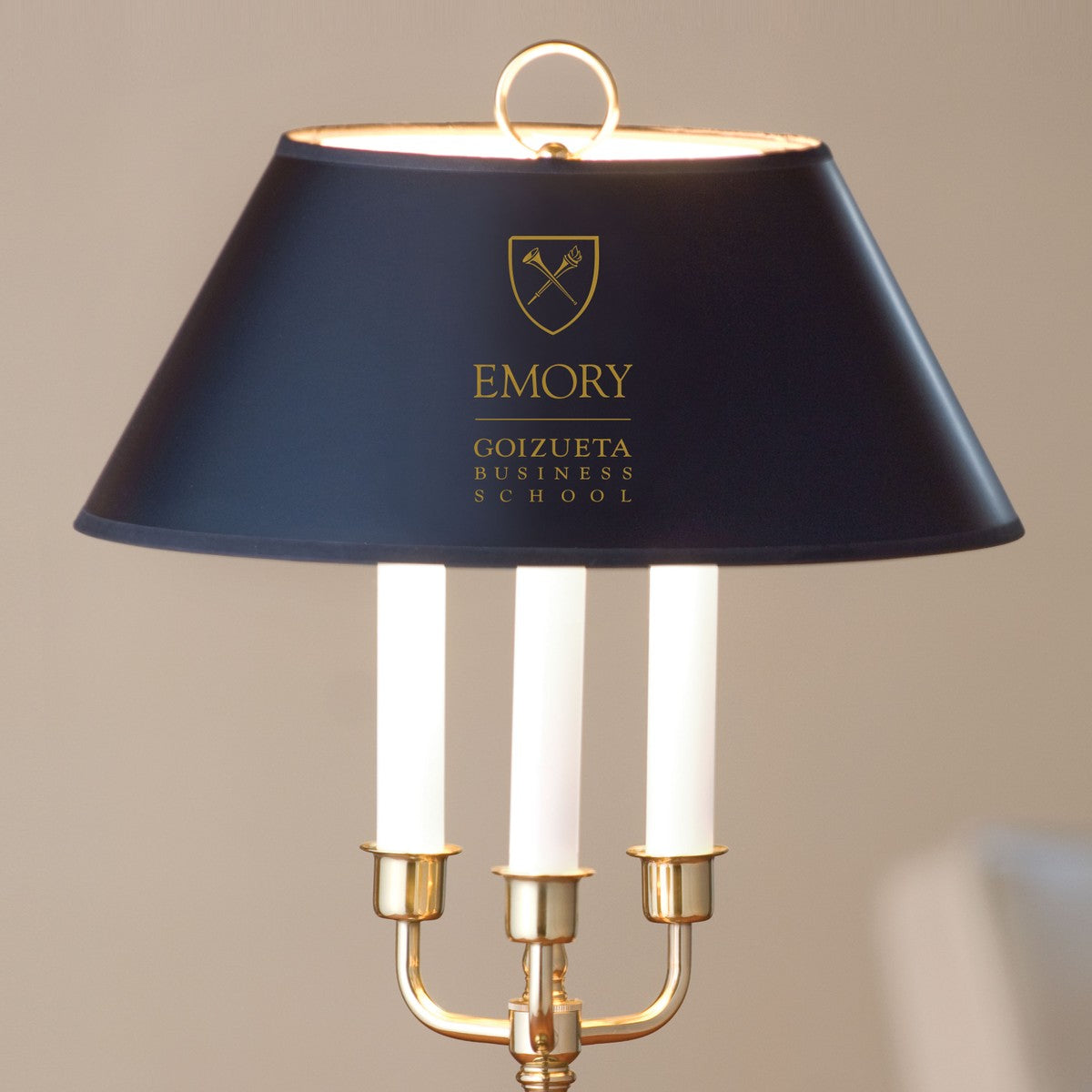 Exemplary craftsmanship defines our traditional Emory Goizueta lamp, highlighted with the Emory Goizueta logo on the black parchment shade. A timeless reminder of your Emory Goizueta days. Free personalization with an engraved brass plate included for easy at-home attachment.
