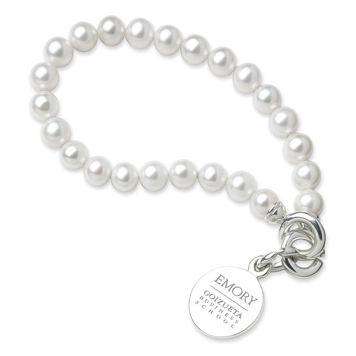 Emory Goizueta Business School pearl bracelet and sterling silver Emory Goizueta charm features the Emory Goizueta logo delicately engraved on front and interlocking "C" clasp.