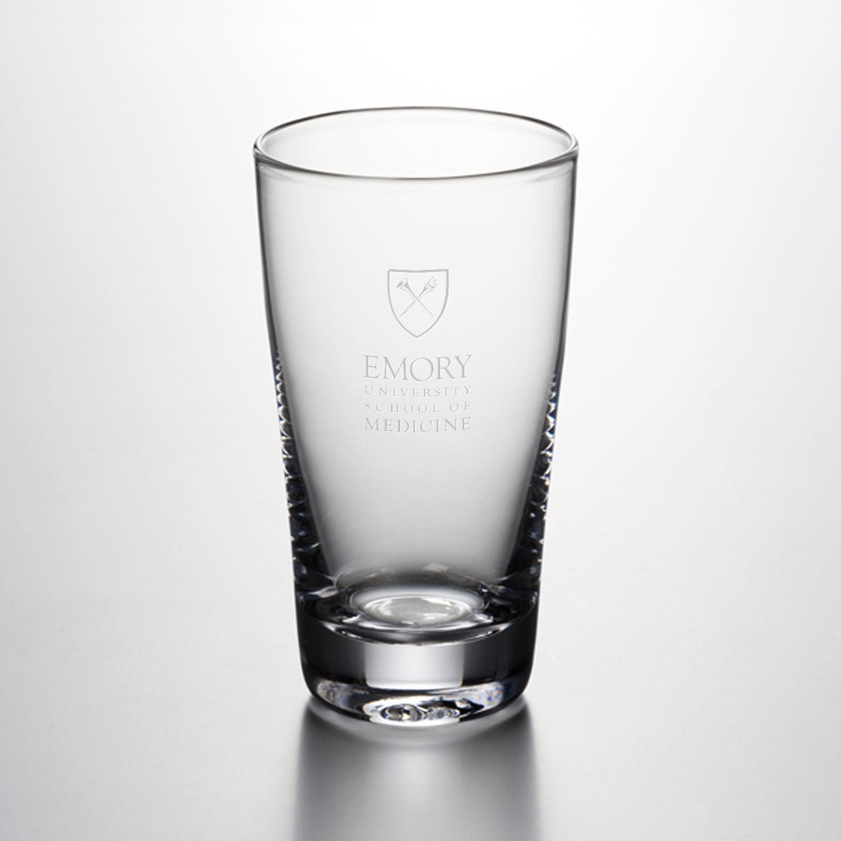 Emory School of Medicine Pint Glass features the Emory School of Medicine logo handsomely engraved on the hand-blown glass. From its narrowly flared lip to its sleek, cylindrical body and sturdy, solid base, this pint glass is a classic.