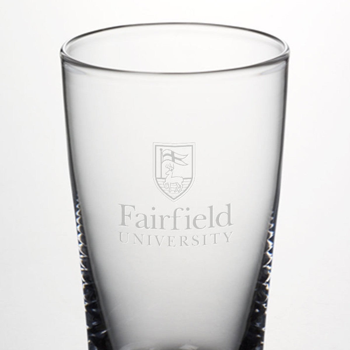 Fairfield Pint Glass features the Fairfield Logo handsomely engraved on the hand-blown glass. From its narrowly flared lip to its sleek, cylindrical body and sturdy, solid base, this pint glass is a classic.