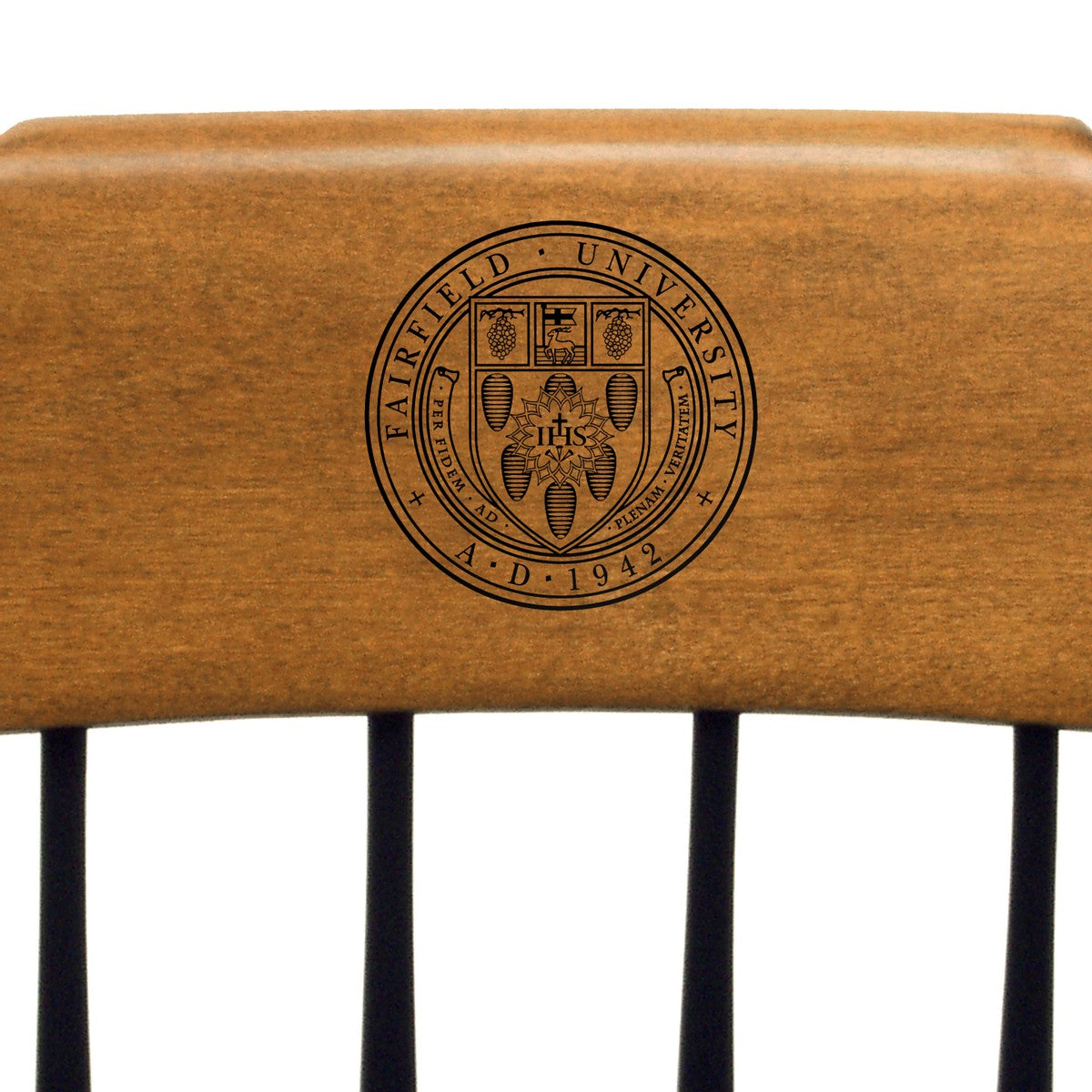 The hand-crafted Fairfield University Captain's chair represents American craftsmanship at its finest. A one-of-a-kind reminder of your Fairfield days. Each commemorative chair is finely detailed with the Fairfield Logo on solid maple hardwood.