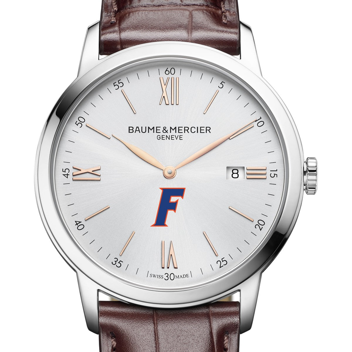 A masterpiece of Swiss craftsmanship, the Florida Men's Baume et Mercier 42mm Classima Watch features a silver sun-satin dial with the Florida logo, gilded hands, and a luxurious brown leather strap. This timepiece offers refined elegance for any occasion, making it the perfect statement piece for the modern gentleman. Complimentary personal engraving.
