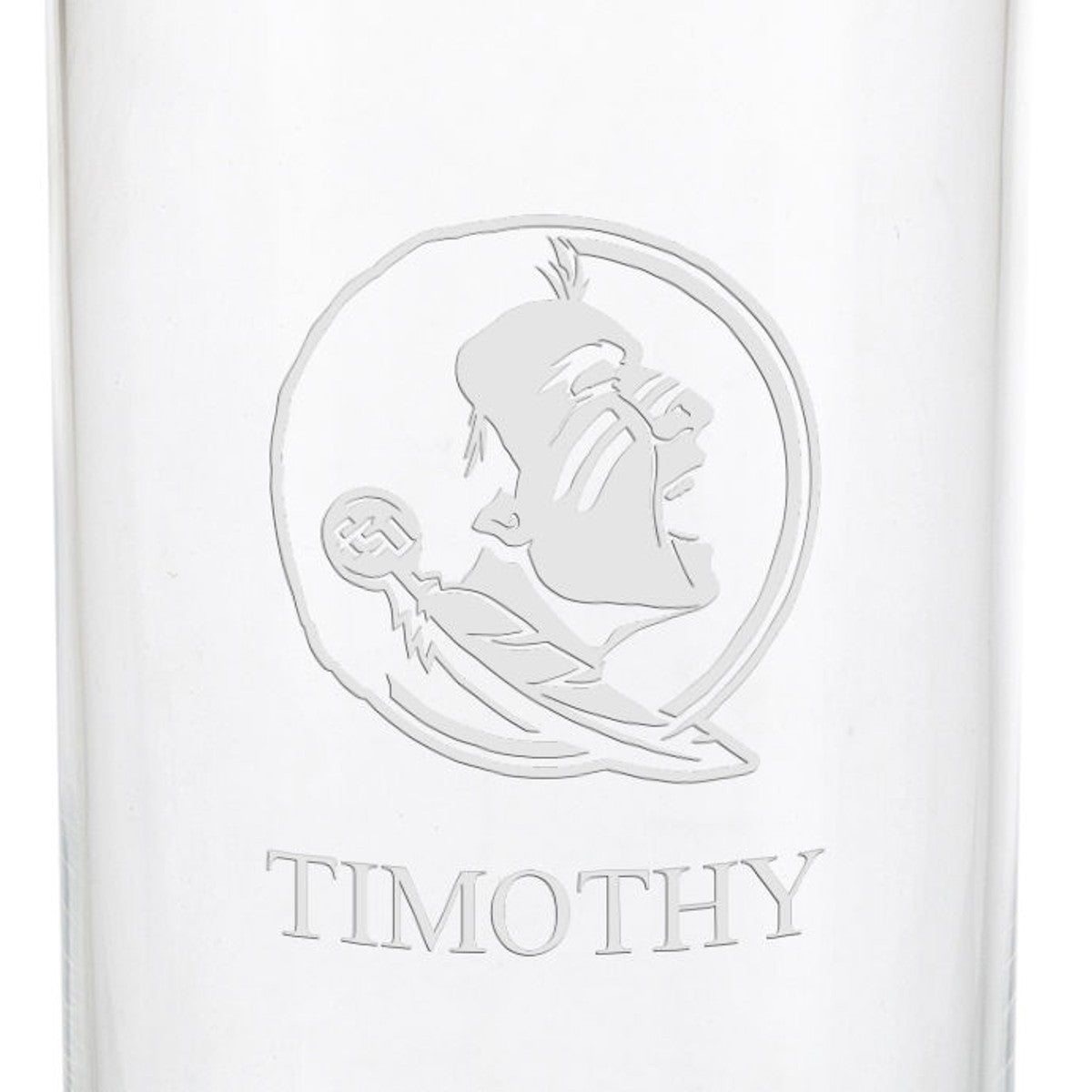 Florida State University iced beverage glasses have the FSU Logo deep-etched on each glass. Generously proportioned 16-ounce glasses are a pleasure to hold.