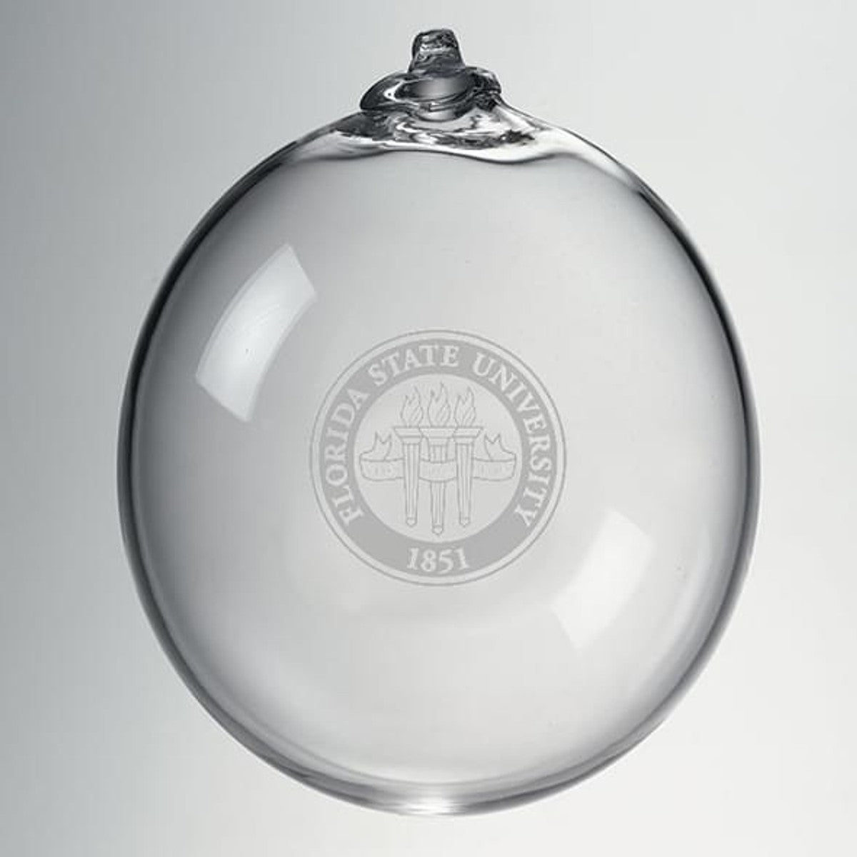 The Florida State University Glass Ornament, beautifully engraved with the FSU Logo, will bring FSU pride to your holiday decor.