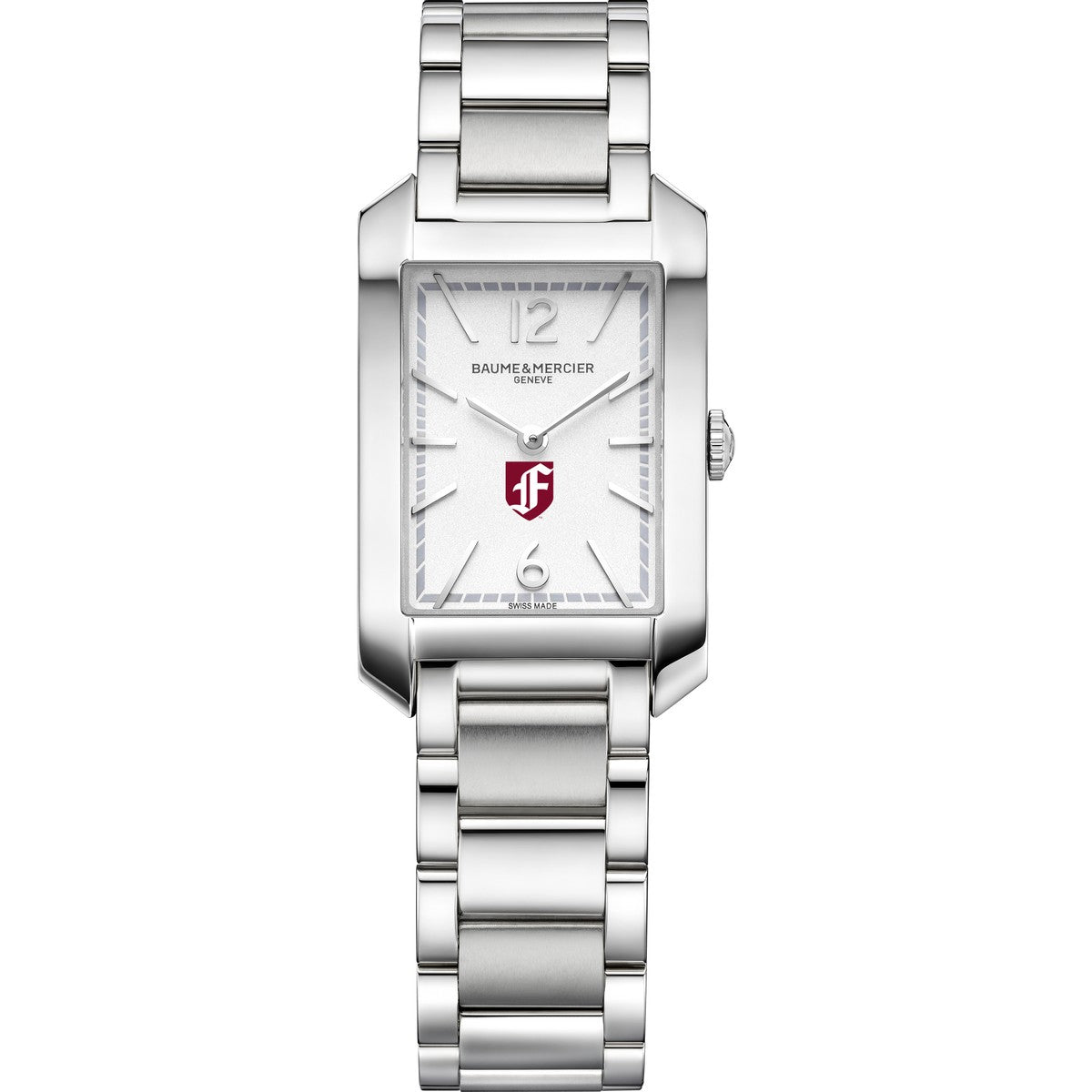 Sleek and sophisticated, the Fordham Women's Baume et Mercier Hampton Watch combines a silver opaline dial with the Fordham logo, rhodium-plated hands, and a polished stainless steel bracelet. A refined and elegant timepiece for those who appreciate timeless style. Complimentary personal engraving.