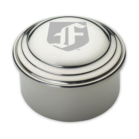 Fordham University pewter keepsake box is a beautiful space to store your treasures and features the Fordham Logo on its lid.