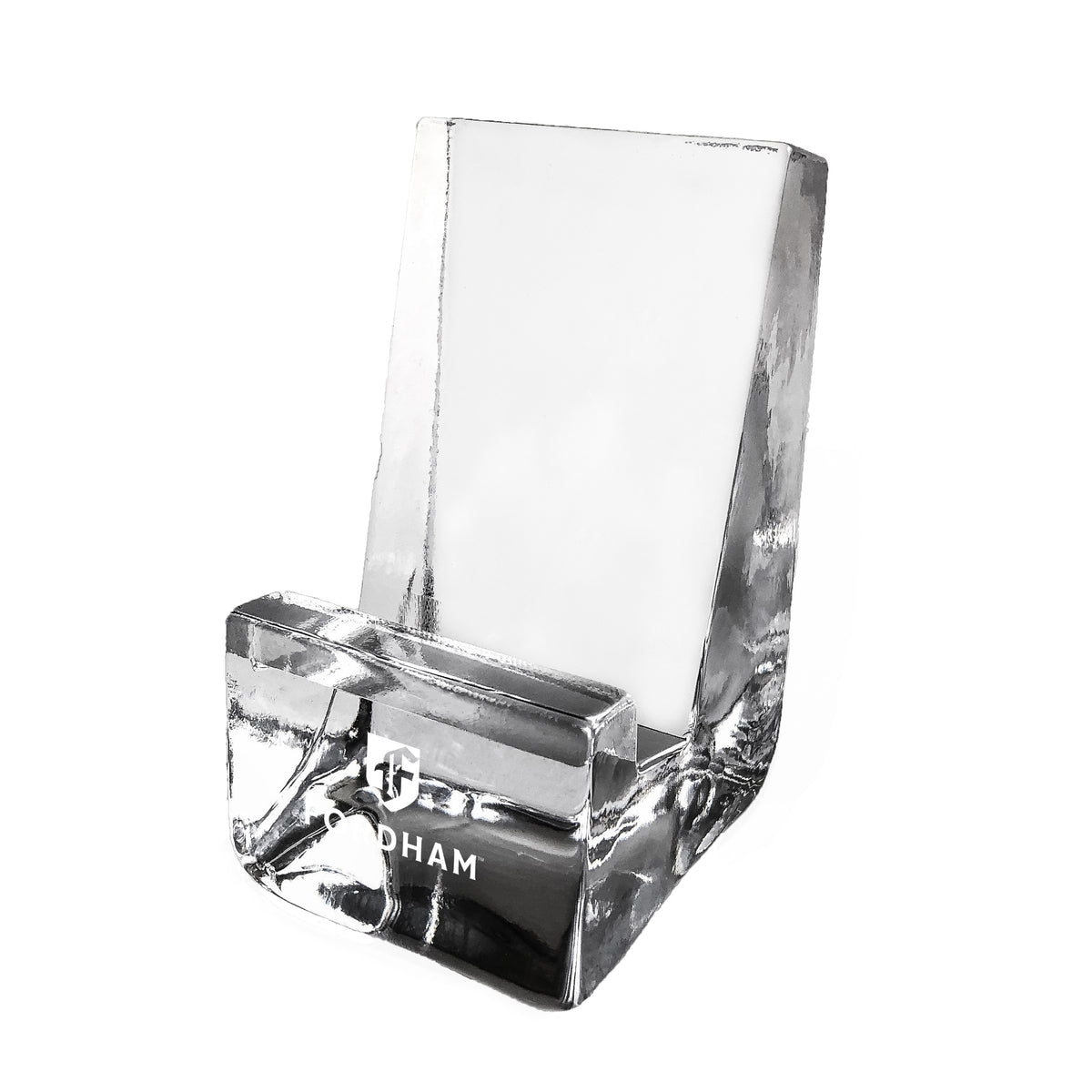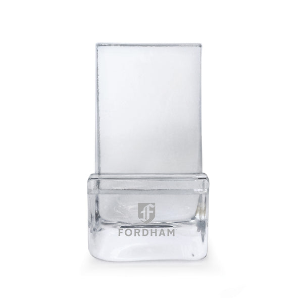 This handcrafted Fordham University Glass Phone Holder is the perfect addition to your work or home environment. Formed from only the finest clear glass, the Fordham Logo is distinctly etched on the front.