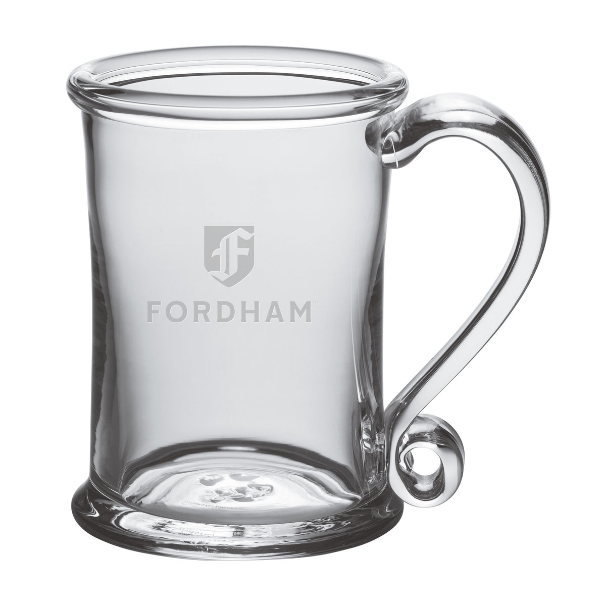 The Fordham Glass Tankard is an ideal choice if you're looking for a versatile glass. The enchantingly curved glass handle will help ensure that you don't spill a drop. The Glass Tankard has the Fordham Logo handsomely etched on the hand-blown glass.