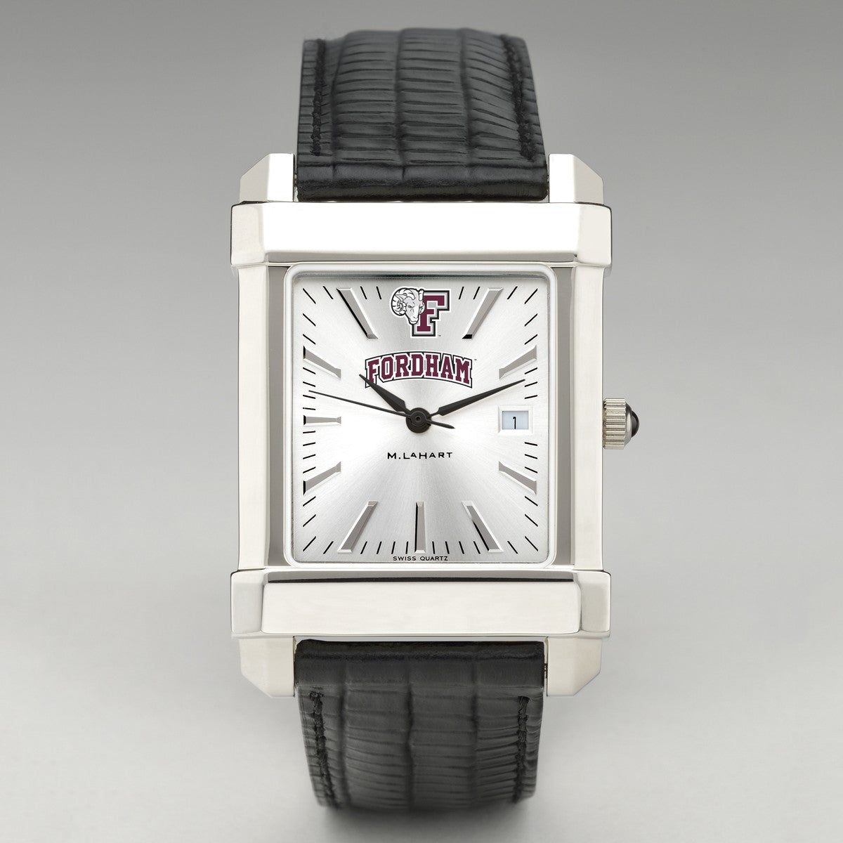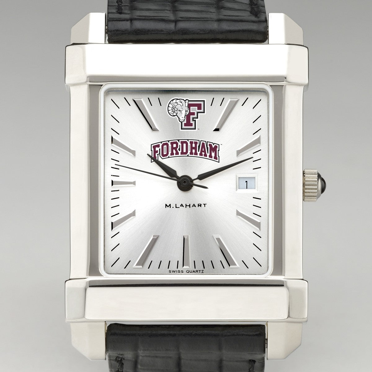 Fordham University men's steel watch featuring the Fordham Logo in full color on our sophisticated new dial with a sunray brushed metallic finish.