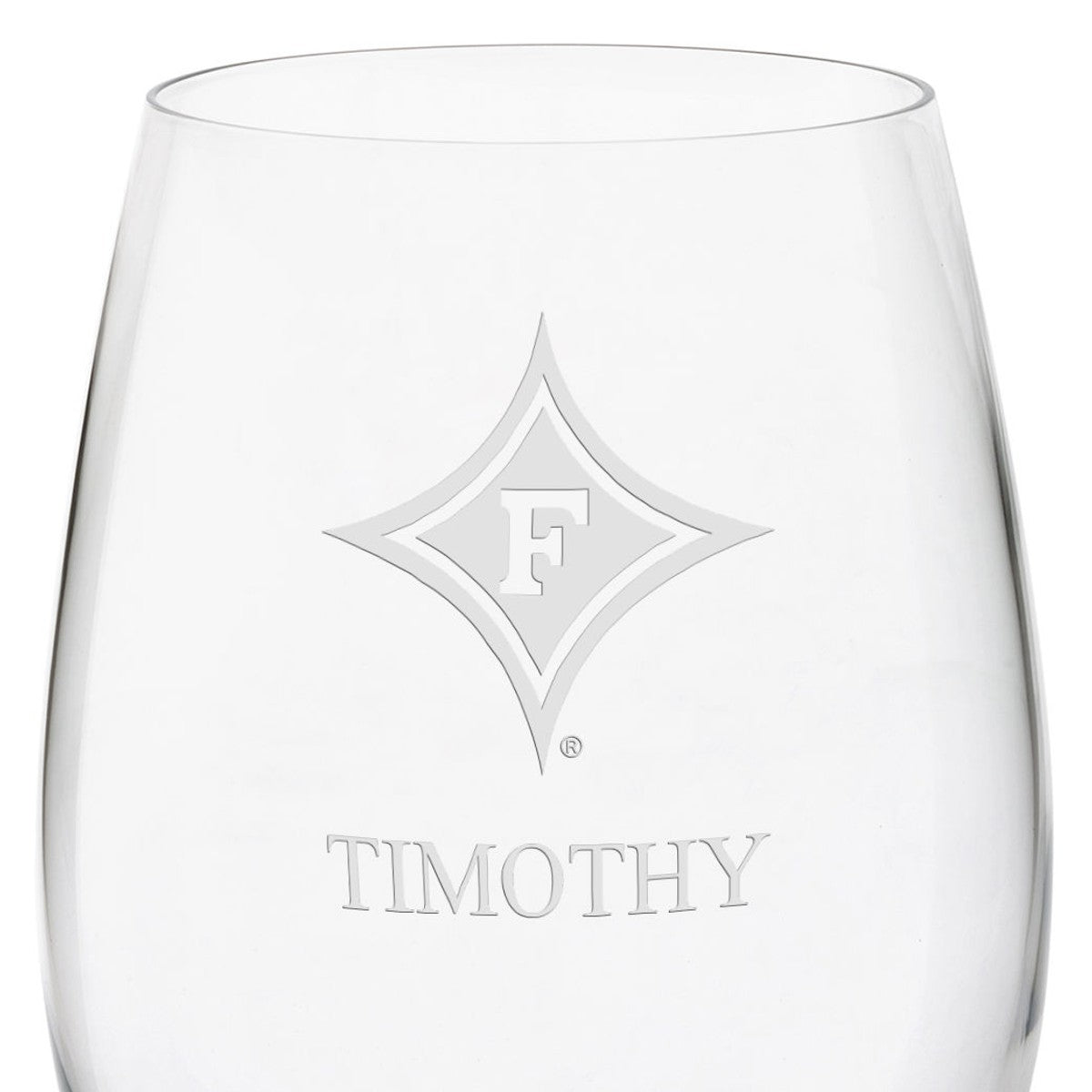 Fine Furman University wine glasses are an elegant touch for your table or bar. The Furman Logo is deep-etched on each glass.