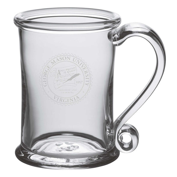The George Mason Glass Tankard is an ideal choice if you're looking for a versatile glass. The enchantingly curved glass handle will help ensure that you don't spill a drop. The Glass Tankard has the George Mason logo handsomely etched on the hand-blown glass.