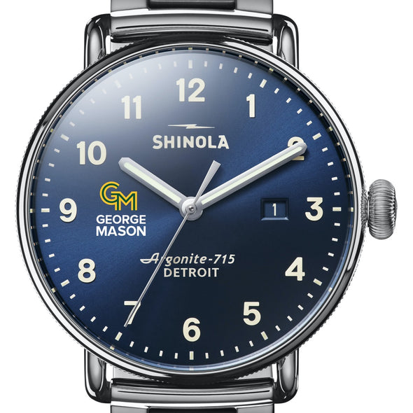 A classic watch with a modern twist, the George Mason University Canfield with the full-color George Mason logo on a midnight blue dial is Shinola's first watch using a top loaded case construction for a larger face and clearer view - showcasing a refined minute track and slim, diamond-cut hands. From the coin edge bezel and neatly framed date window to the sophisticated three-link stainless steel bracelet, this watch proves that details weren't meant to be overlooked, they were meant to be celebrated. Complimentary personal engraving.