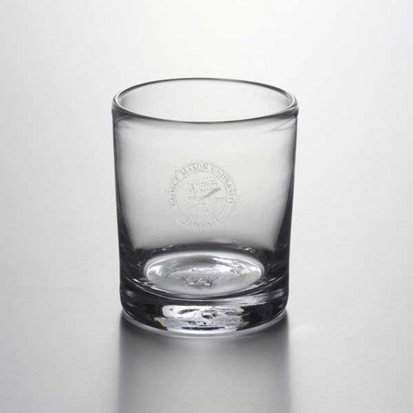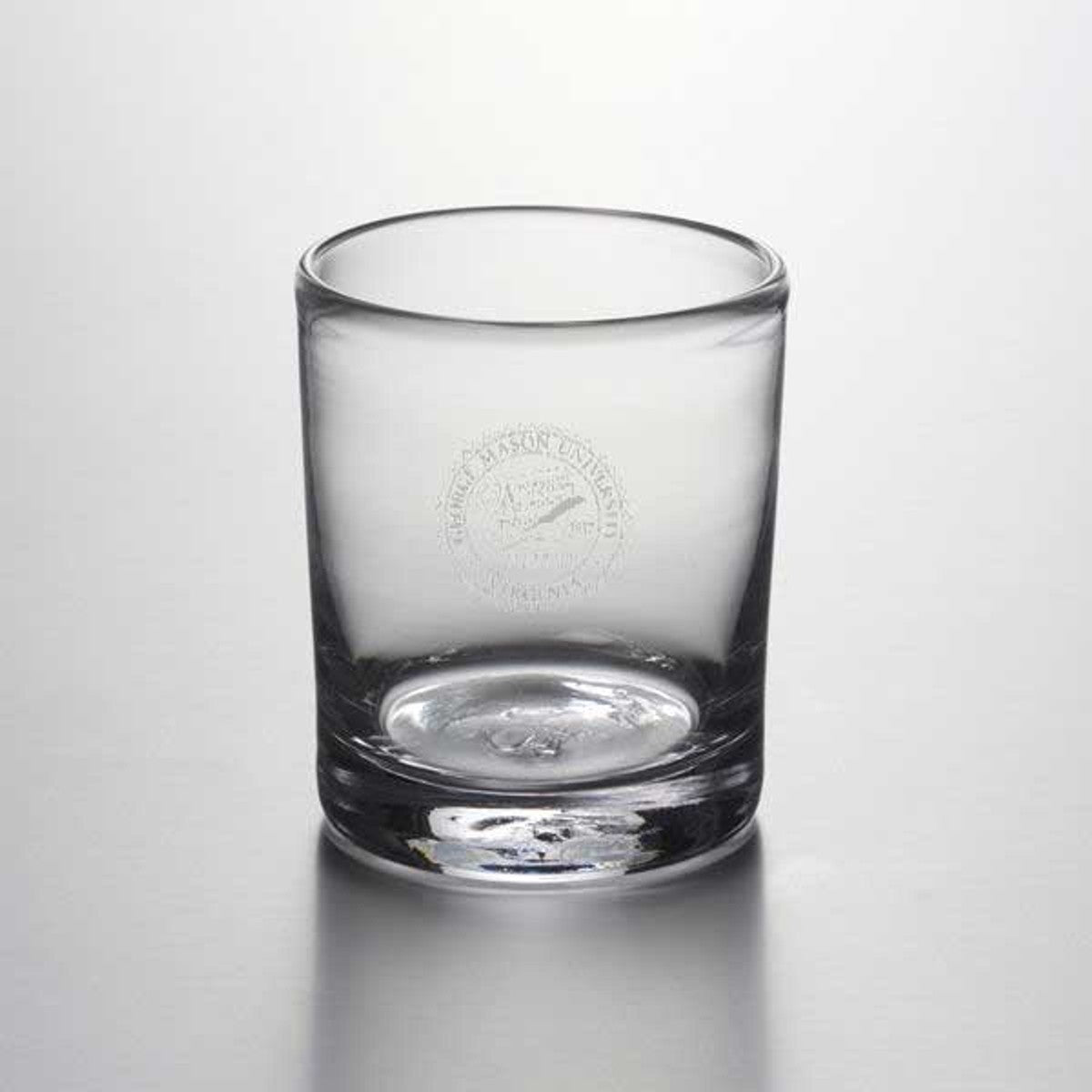The George Mason Double Old Fashioned Glass features the George Mason logo etched on the hand-blown glass. From its narrowly flared lip to its sleek, cylindrical body and sturdy, solid base, this glass epitomizes sophistication.