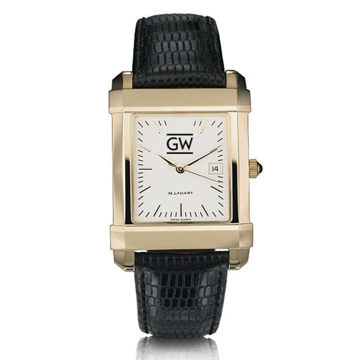 George Washington University men's gold watch featuring the George Washington Logo on cream dial. Free Engraving on all watches.
