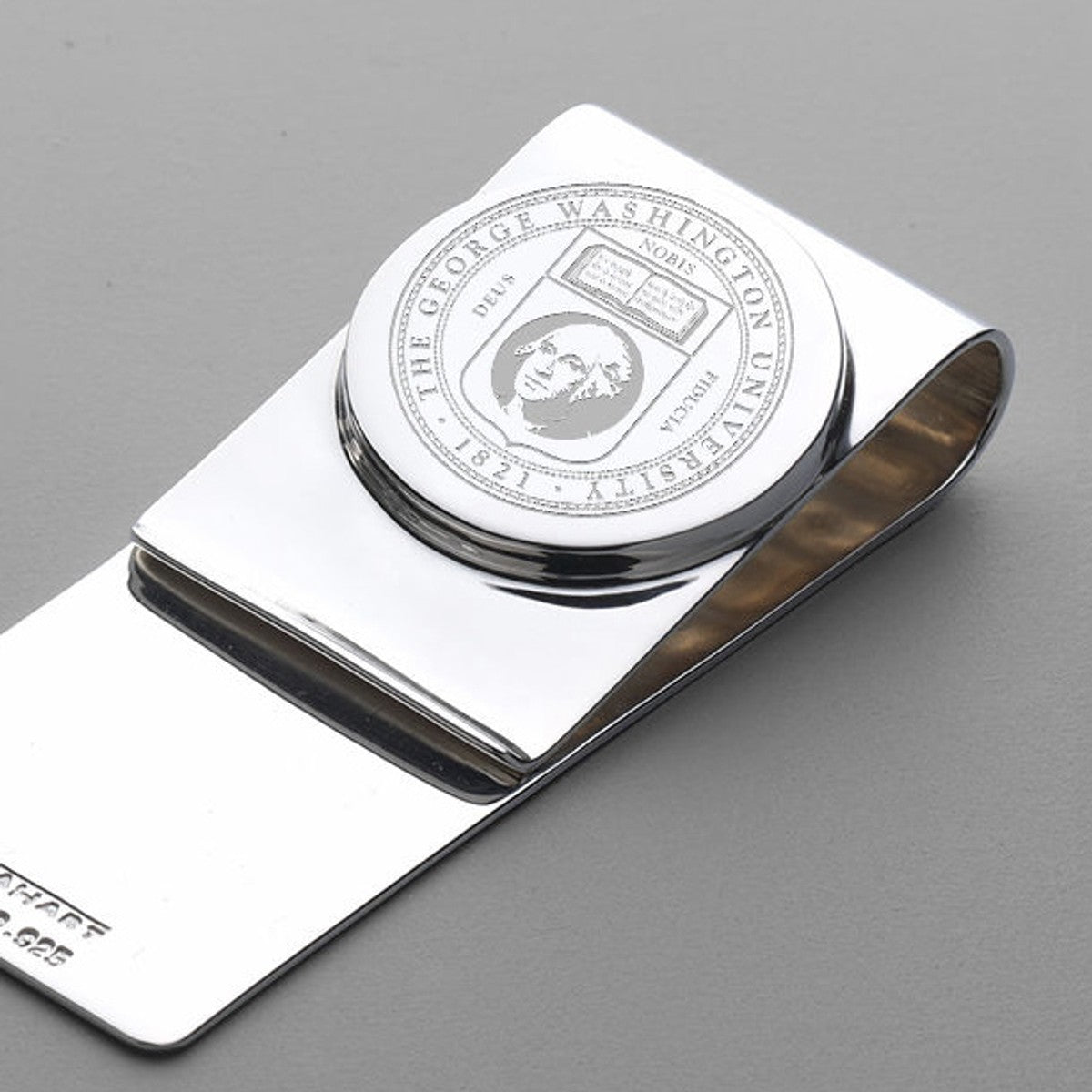George Washington University sterling silver money clip features finely detailed George Washington Logo.