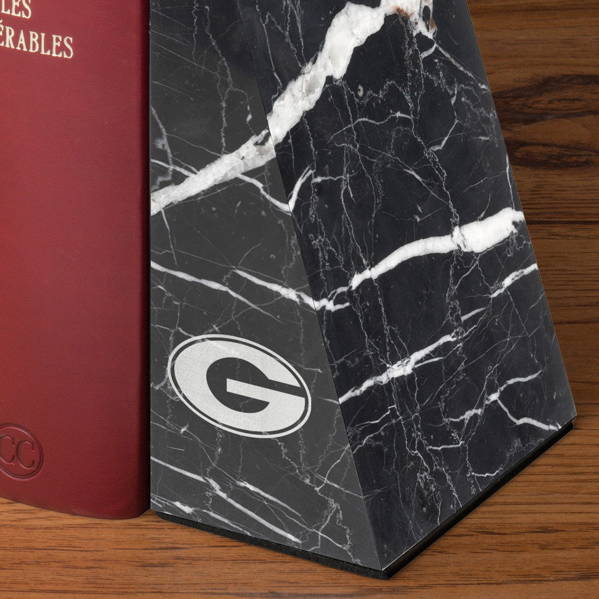 Add another classic to your library collection! Each bookend is crafted from a single piece of solid marble and weighs 4 lbs. Padded to protect furniture and prevent slipping. The University of Georgia insignia is featured prominently on the front of both bookends.