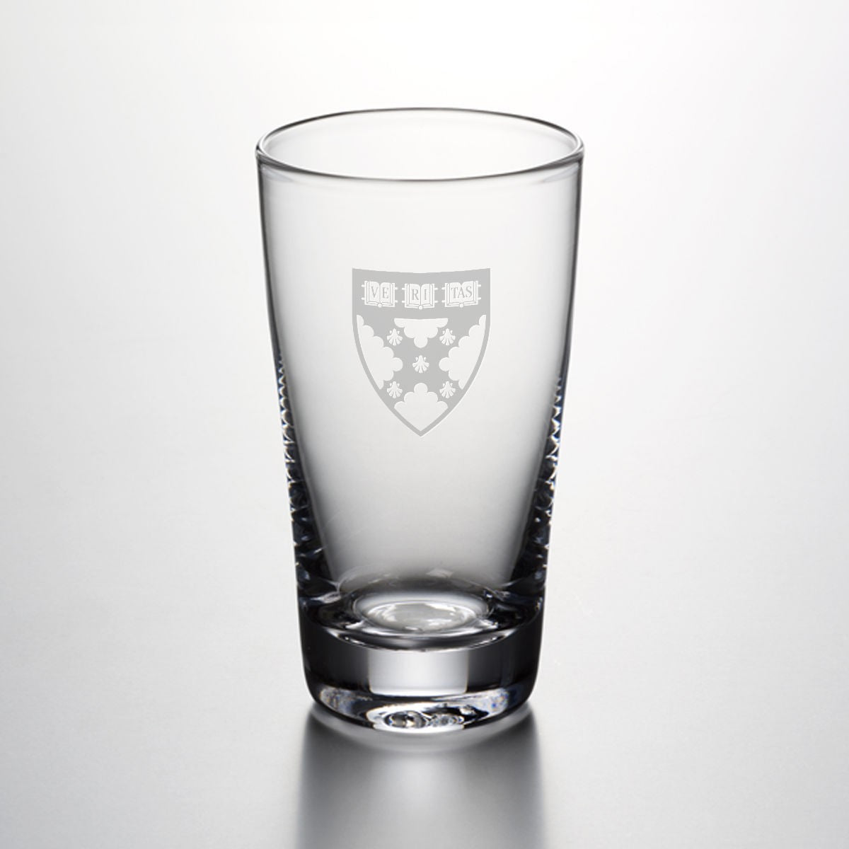 HBS Pint Glass features the Harvard Business School Logo handsomely engraved on the hand-blown glass. From its narrowly flared lip to its sleek, cylindrical body and sturdy, solid base, this pint glass is a classic.
