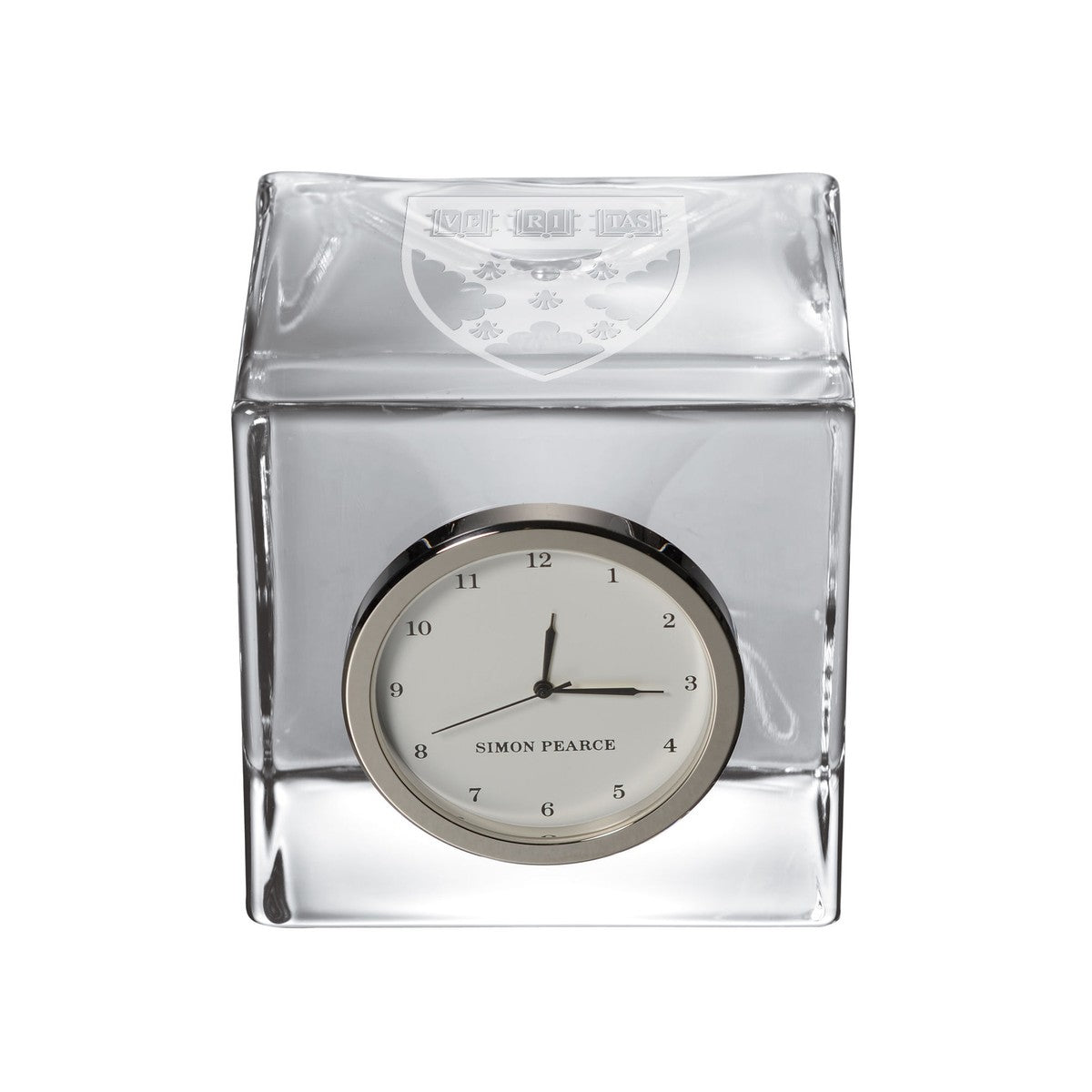 The Harvard Business School Glass Desk Clock is distinctly etched with the Harvard Business School Logo, and is a great addition to any surface. The clock includes a traditional numbered face with a sweep hand to count the seconds.