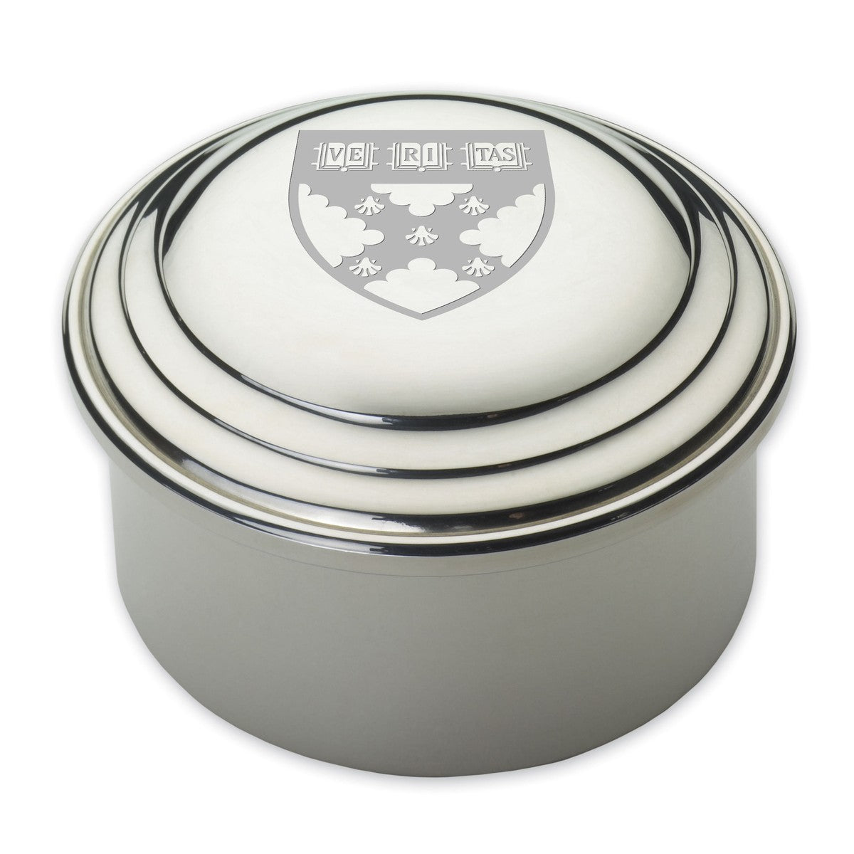 Harvard Business School pewter keepsake box is a beautiful space to store your treasures and features the Harvard Business School Logo on its lid.