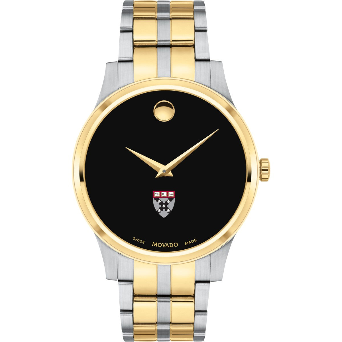 The Harvard Business School Men's Movado Collection watch showcases the iconic Harvard Business School Logo in full color on a sophisticated black dial. This classic timepiece, featuring the renowned concave dot symbolizing the sun at high noon, has been a design masterpiece since its creation in 1947. Personalize your watch with free engraving without any delay to your order.
