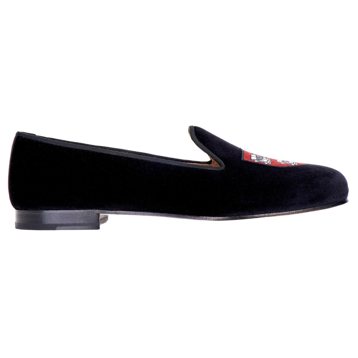 Hand-crafted in Spain by fashion icon Stubbs & Wootton, the Harvard University Men's slipper features a Spanish Cotton-Velvet Upper with a Grosgrain Trim. Finished off with a detailed embroidery of the Harvard Logo on each toe, these slippers are the perfect addition to any ensemble.