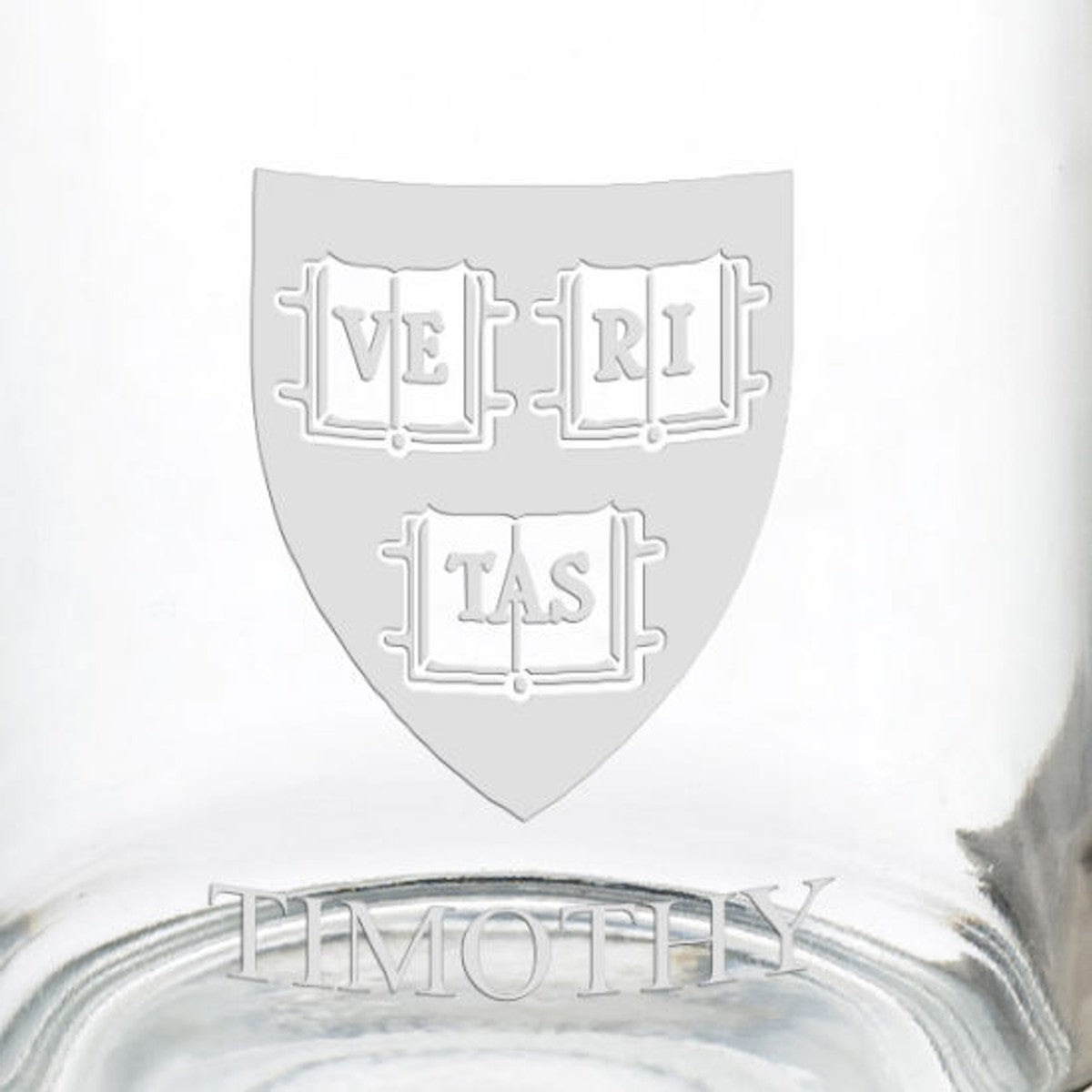 The Harvard glass coffee mug is deep-etched with the Harvard University logo. Generously proportioned 13 oz glasses are a pleasure to hold. Your name can be added under the logo for free.