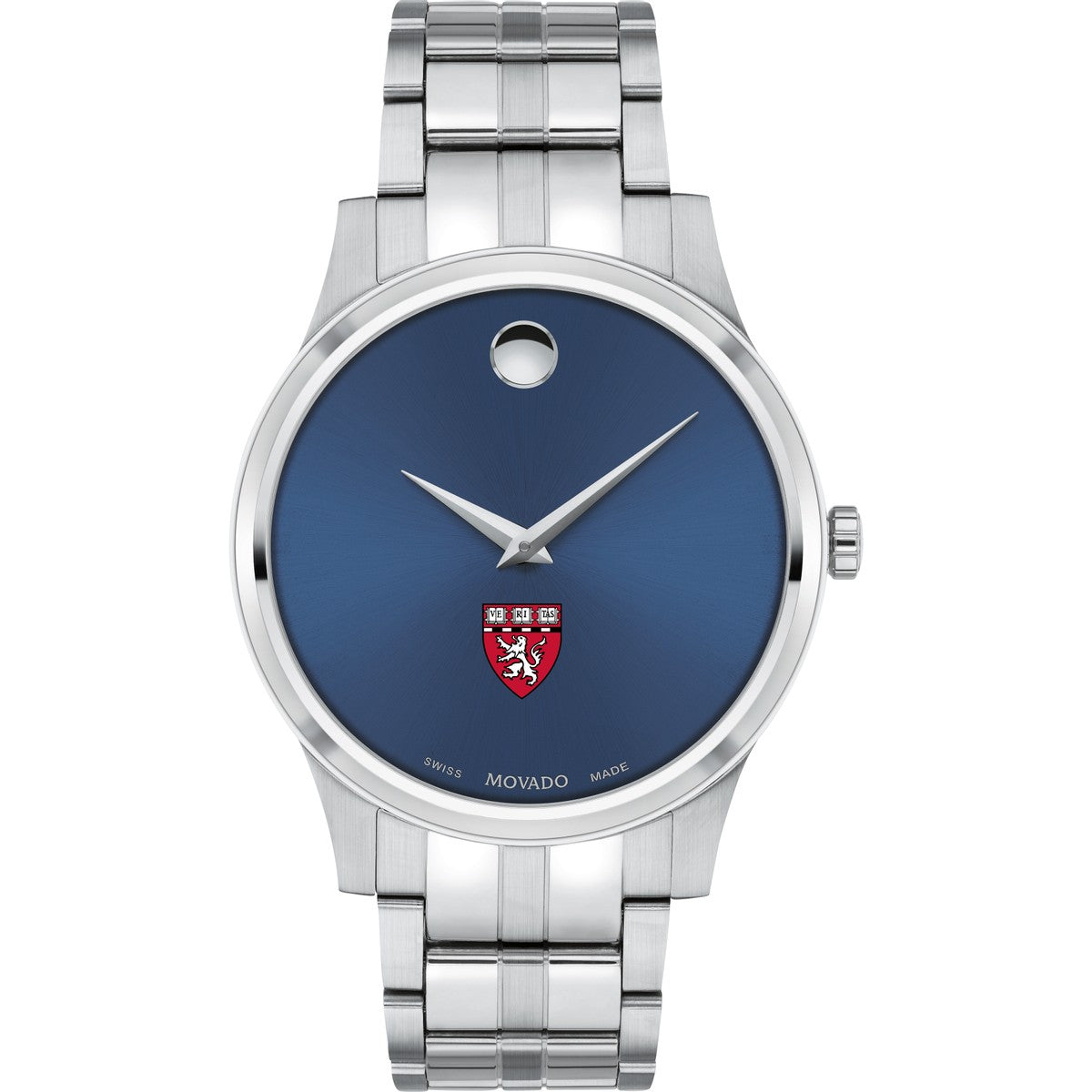 The Harvard Medical School Men's Movado Collection watch boasts a striking blue dial featuring the iconic Harvard Medical School logo in full color. This timeless timepiece, renowned for its concave dot representing the sun at high noon, has been a symbol of elegance since its inception in 1947. Make it uniquely yours with free engraving without affecting order processing time.