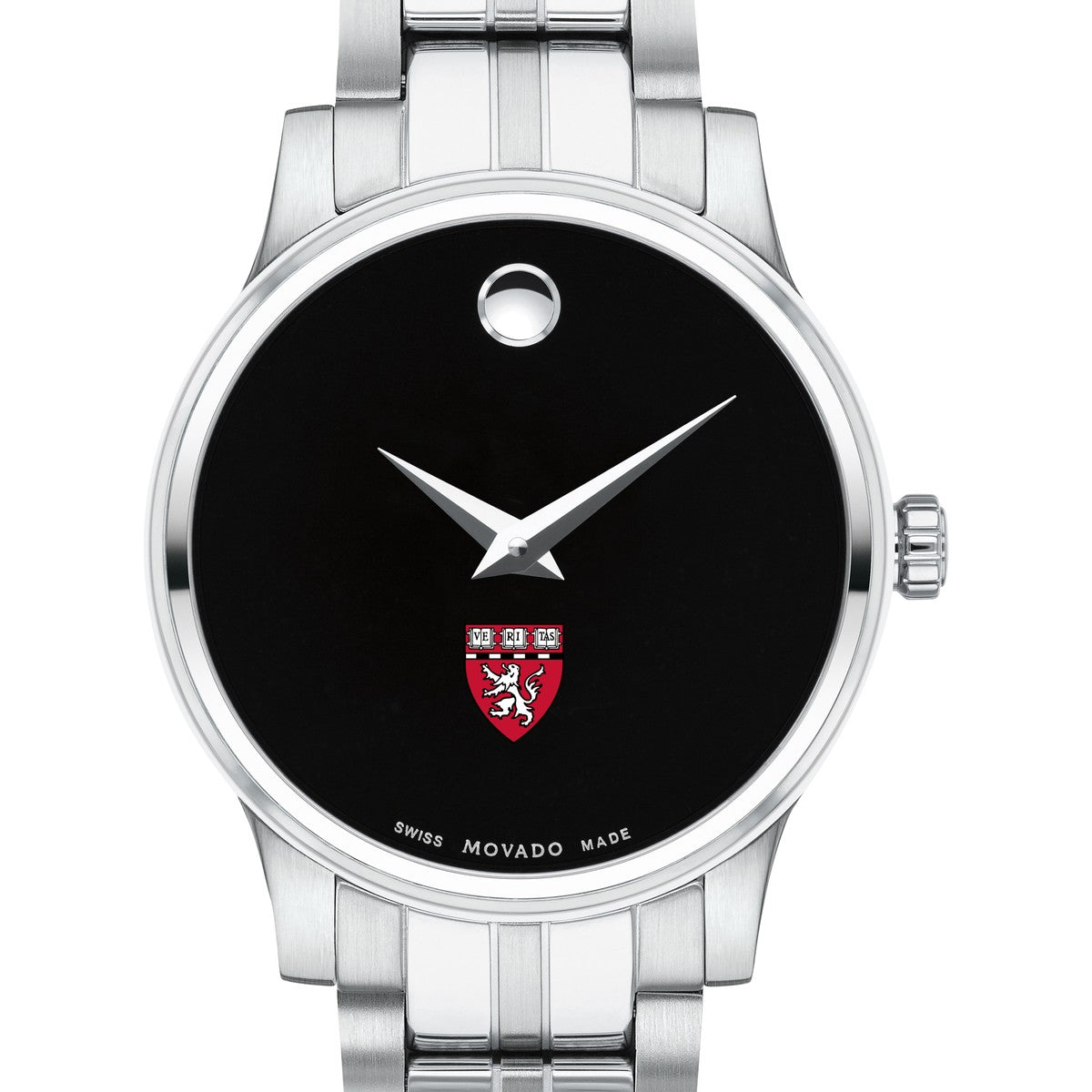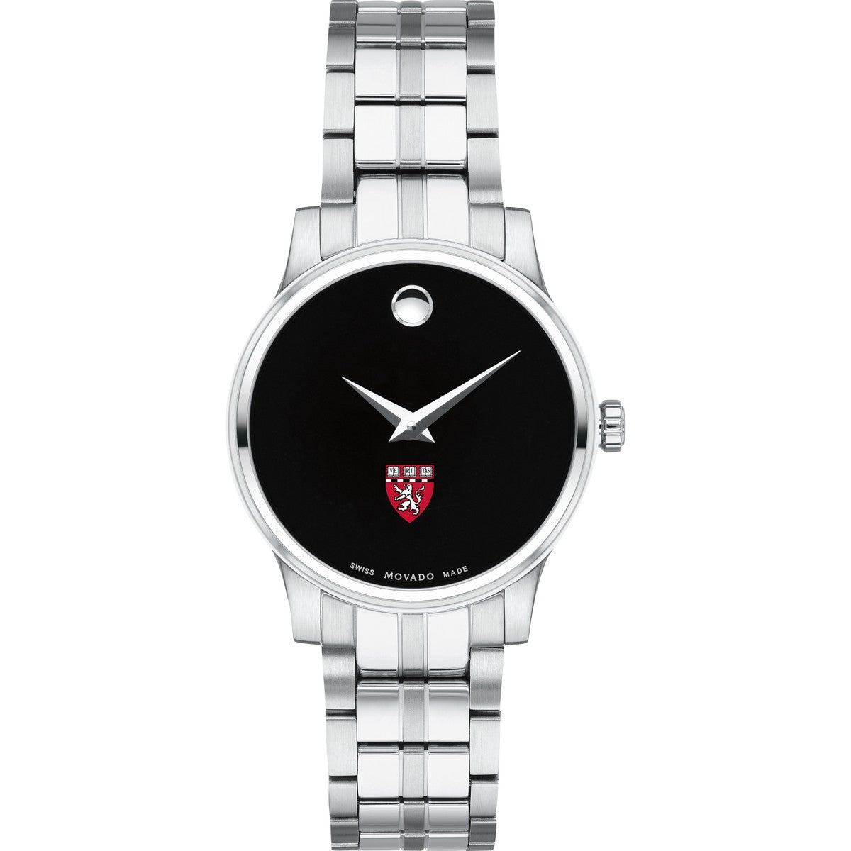 The Harvard Medical School Women's Movado Collection watch showcases the iconic Harvard Medical School logo in full color against a sophisticated black dial. This elegant timepiece, featuring the renowned concave dot symbolizing the sun at high noon, embodies timeless style. Personalize your watch with free engraving without any delay to your order.