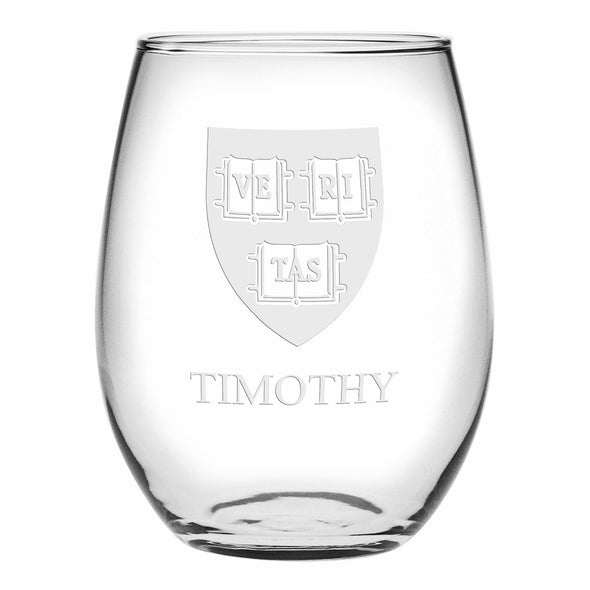 These modern Harvard University stemless wine glasses are perfect for every occasion and any type of wine. Each glass is made in the USA and laser etched with Harvard Logo.