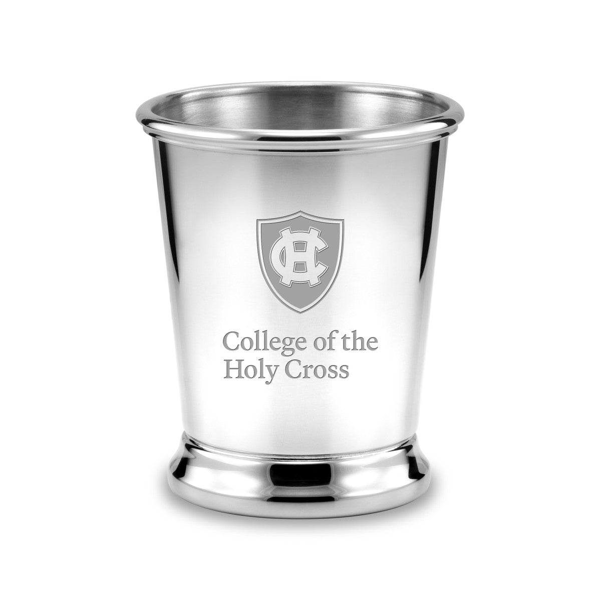 College of the Holy Cross pewter julep cup, intricately engraved with "Holy Cross" and seal, makes a fine desk accessory. A stylish container for pens and pencils.