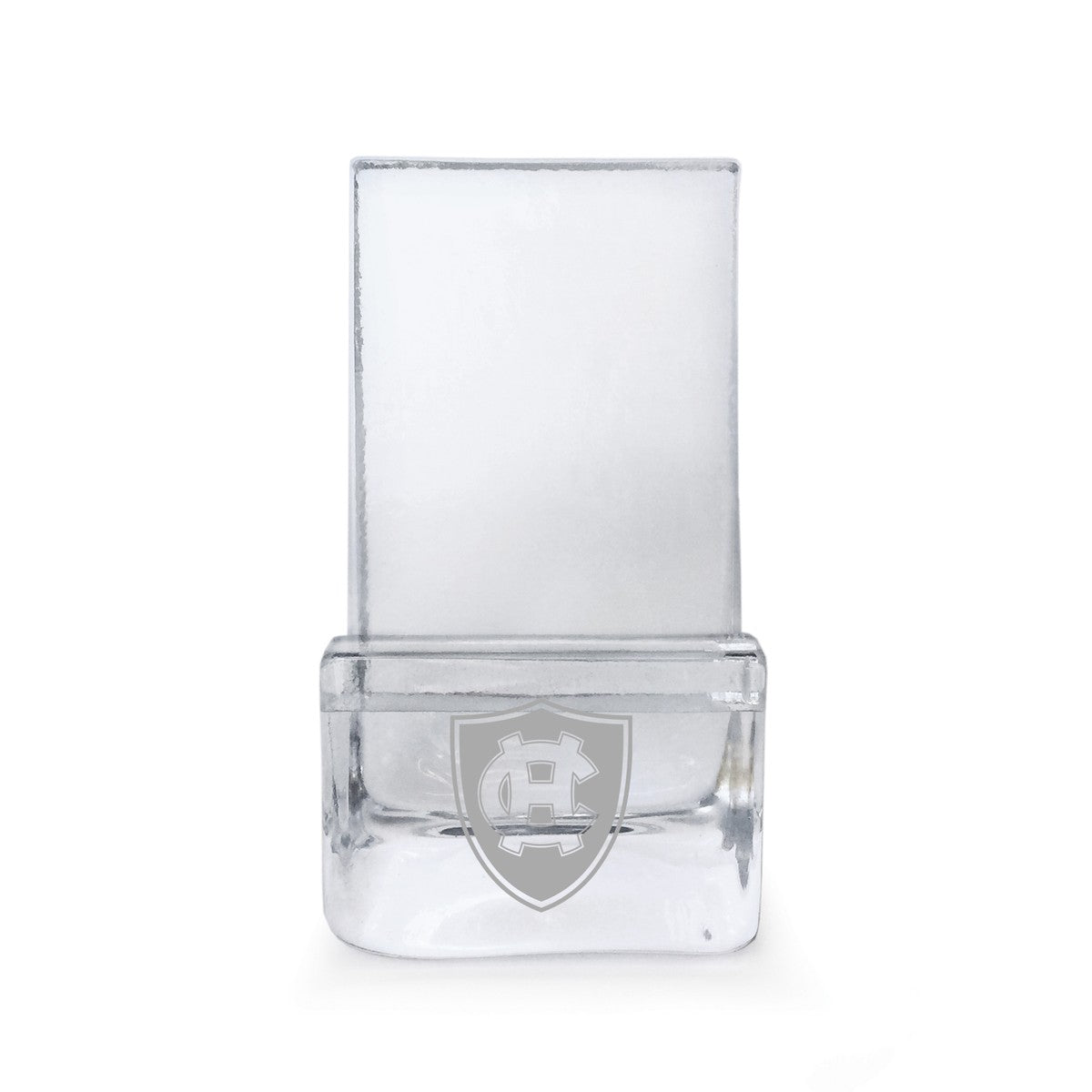 This handcrafted Holy Cross Glass Phone Holder is the perfect addition to your work or home environment. Formed from only the finest clear glass, the Holy Cross Logo is distinctly etched on the front.