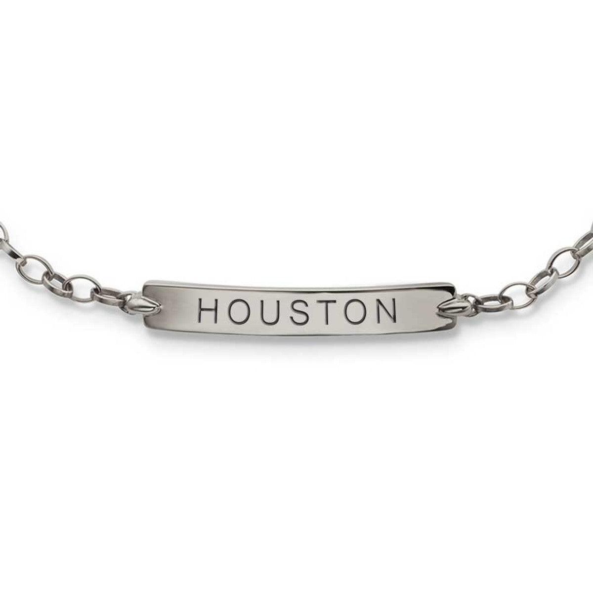 A feminine, delicate bracelet in sterling silver as appropriate for evening wear as day. "HOUSTON" engraved on slim banner accentuates the elegance.