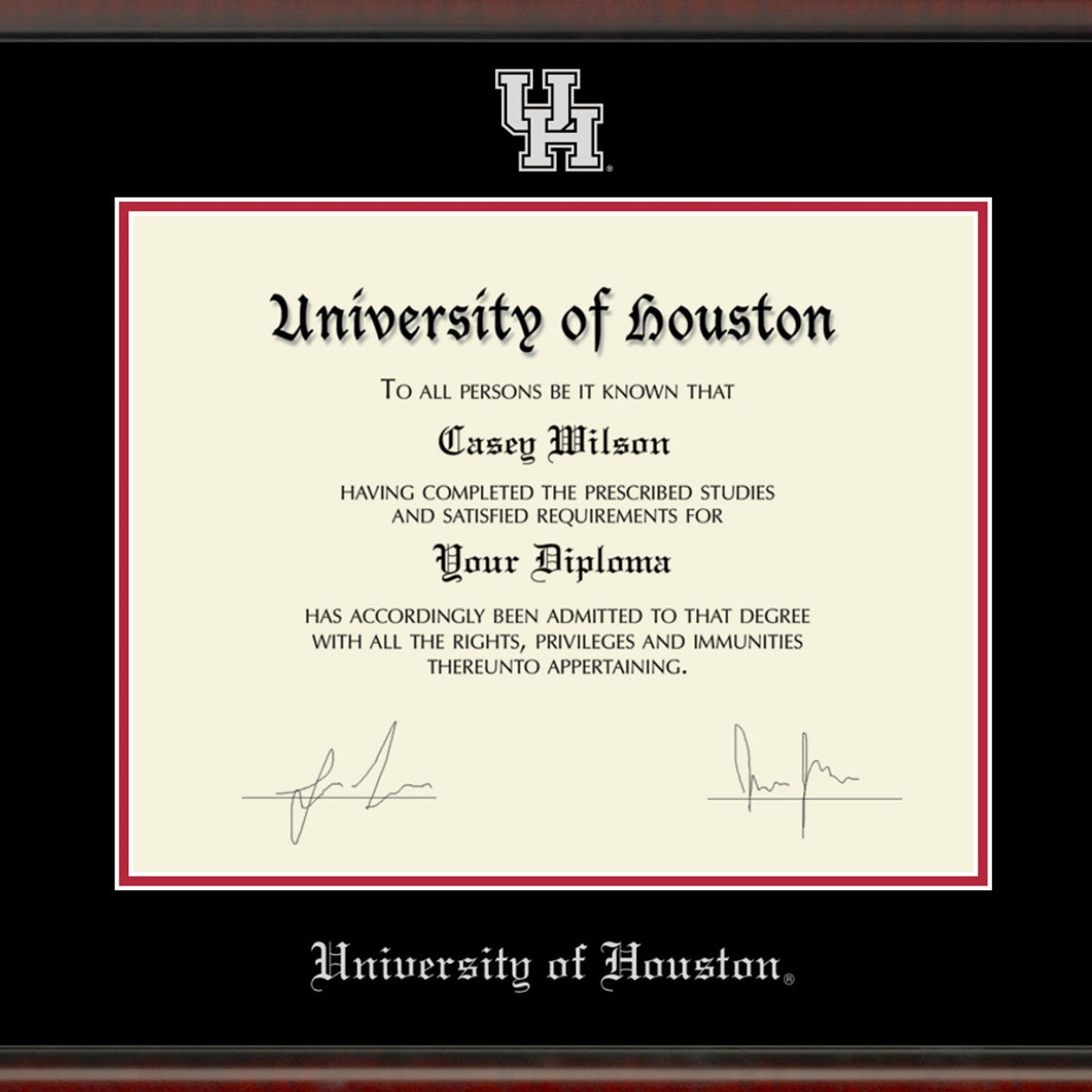 This University of Houston diploma frame is crafted from solid wood in the USA. Proudly display your Houston diploma with museum quality conservation mounting materials to showcase and protect your University of Houston diploma.