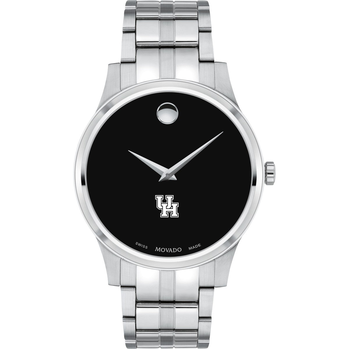 The University of Houston Men's Movado Collection watch showcases the iconic Houston Logo in full color on a sophisticated black dial. This classic timepiece, featuring the renowned concave dot symbolizing the sun at high noon, has been a design masterpiece since its creation in 1947. Personalize your watch with free engraving without any delay to your order.