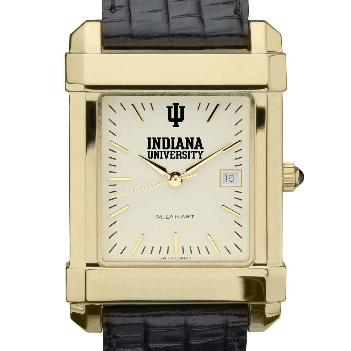 Indiana University men's gold watch featuring the Indiana Logo on cream dial. Free Engraving on all watches.
