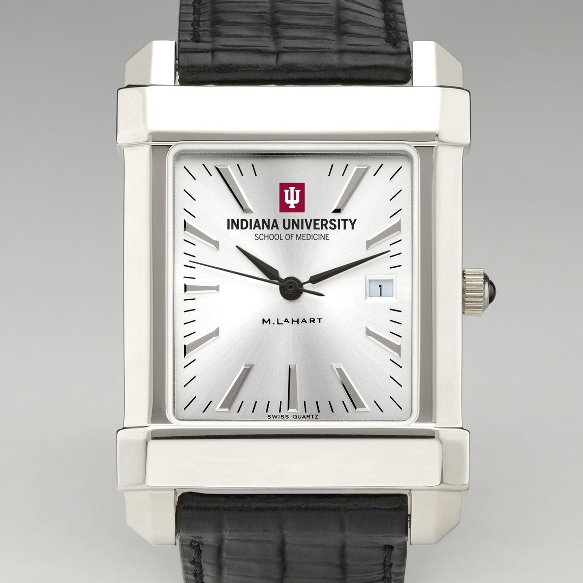 Indiana University School of Medicine men's steel watch featuring the IU School of Medicine logo in full color on our sophisticated new dial with a sunray brushed metallic finish.