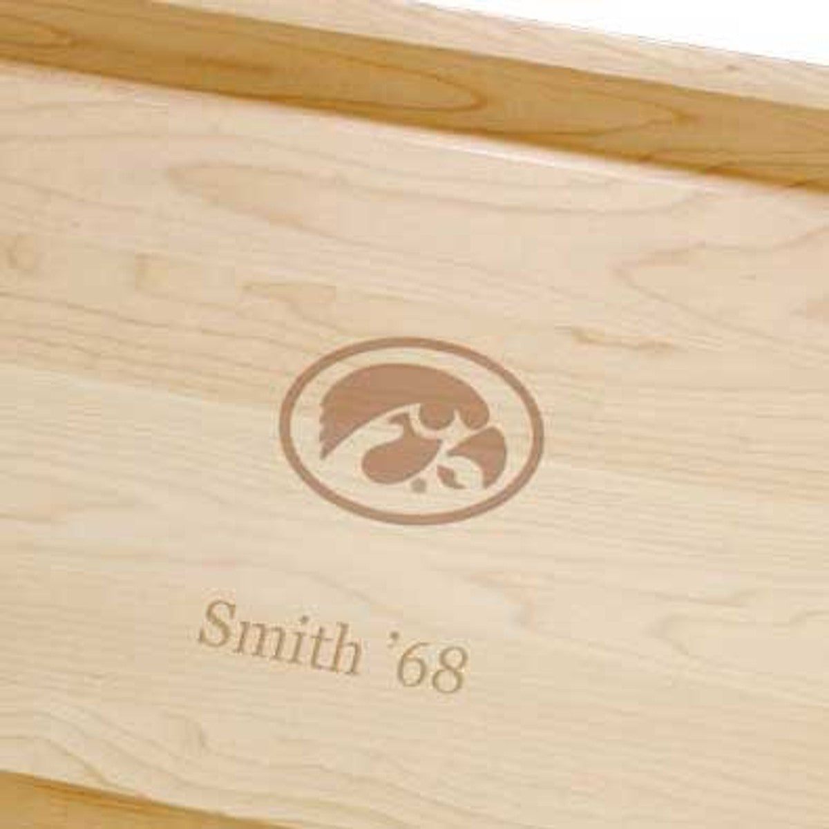 The University of Iowa Maple Cutting Board is crafted from sturdy Maple with undercut handles and a wide groove to collect juices while you carve. Ample surface featuring the University of Iowa logo is suitable for both cutting and serving.