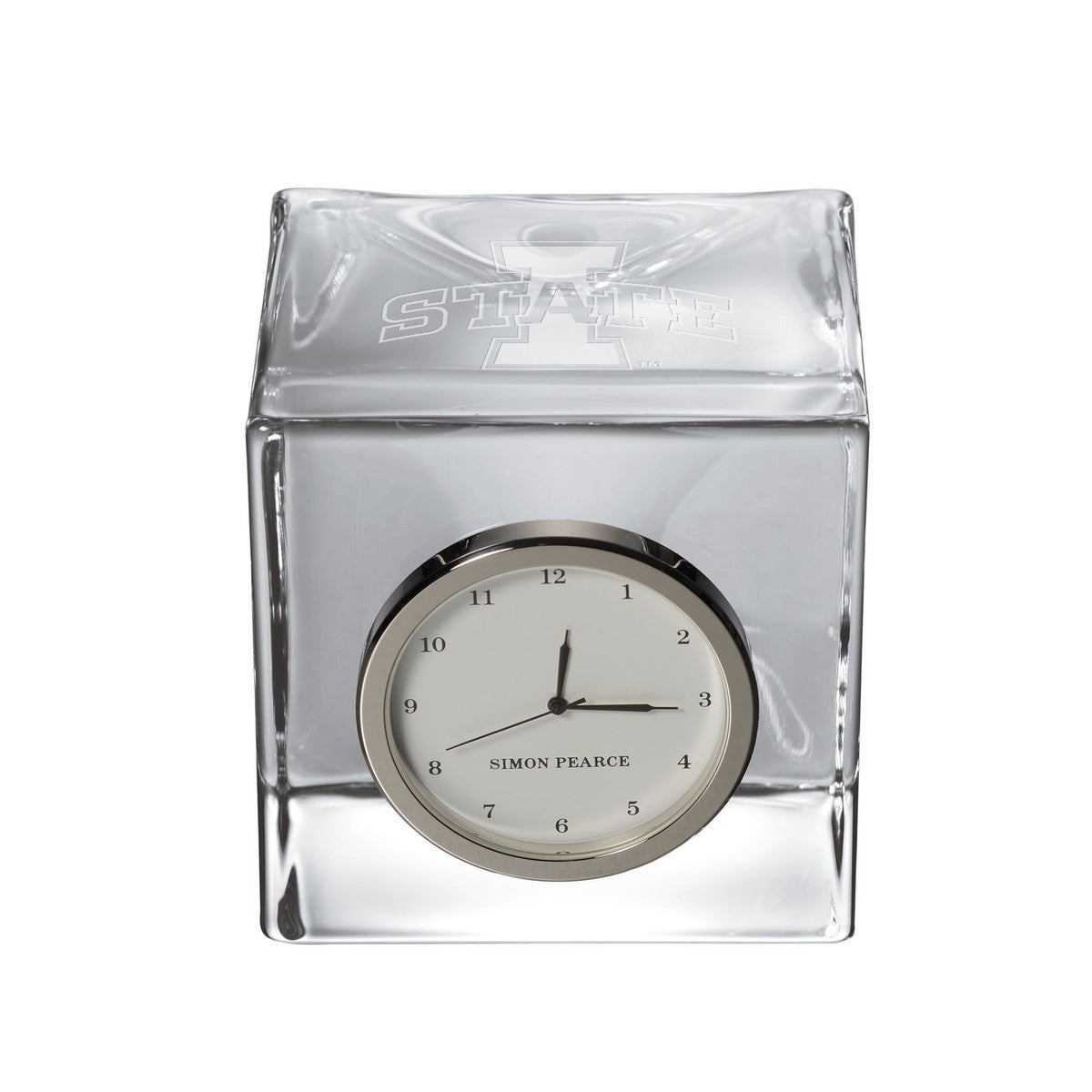 The Iowa State University Glass Desk Clock is distinctly etched with the Iowa State logo, and is a great addition to any surface. The clock includes a traditional numbered face with a sweep hand to count the seconds.