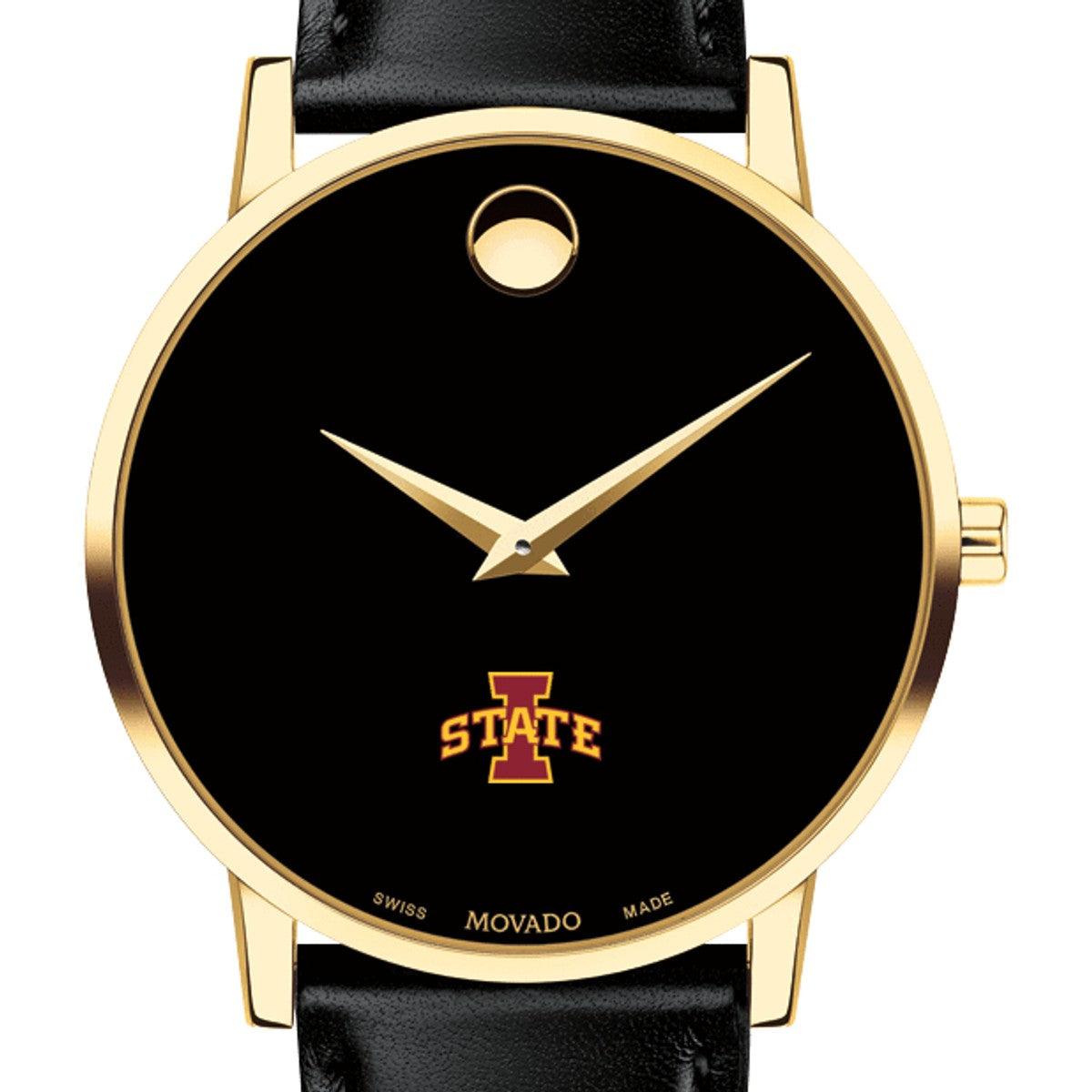 Iowa State University Men's Movado Museum watch features the Iowa State logo in full color at 6 o'clock on black dial. Created in 1947, the iconic concave dot symbolizes the sun at high-noon. Complimentary personal engraving.
