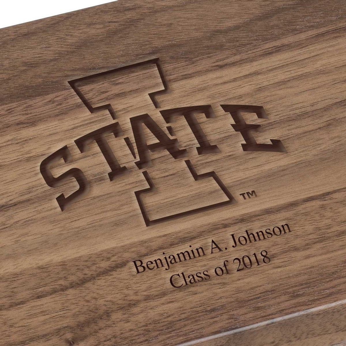 Our beautiful solid walnut desk box is made from hand-selected domestic walnut and crafted in the USA. Each box is hand finished with care, and proudly displays the Iowa State logo on the lid.