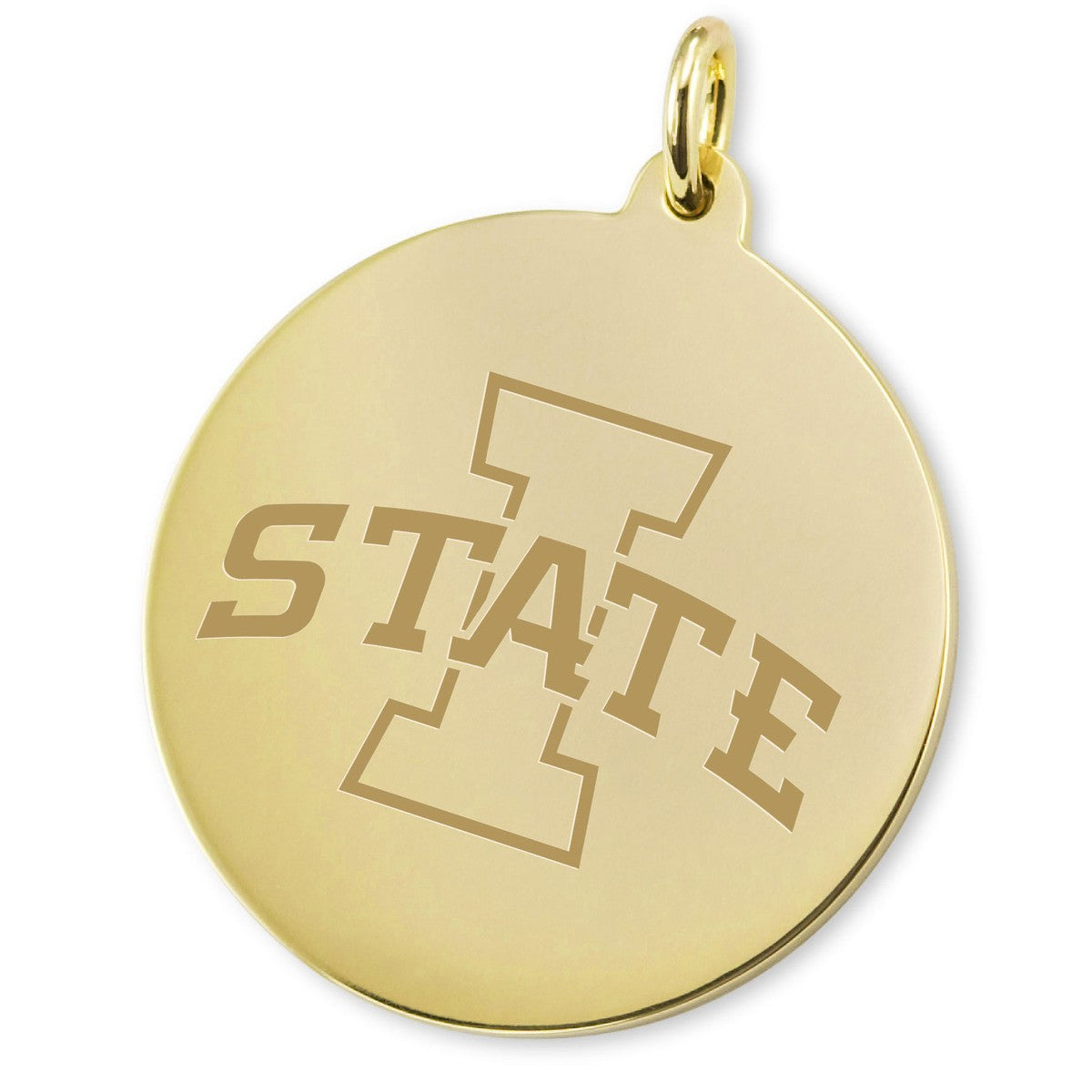 Iowa State University 14-karat charm features Iowa State logo on front.