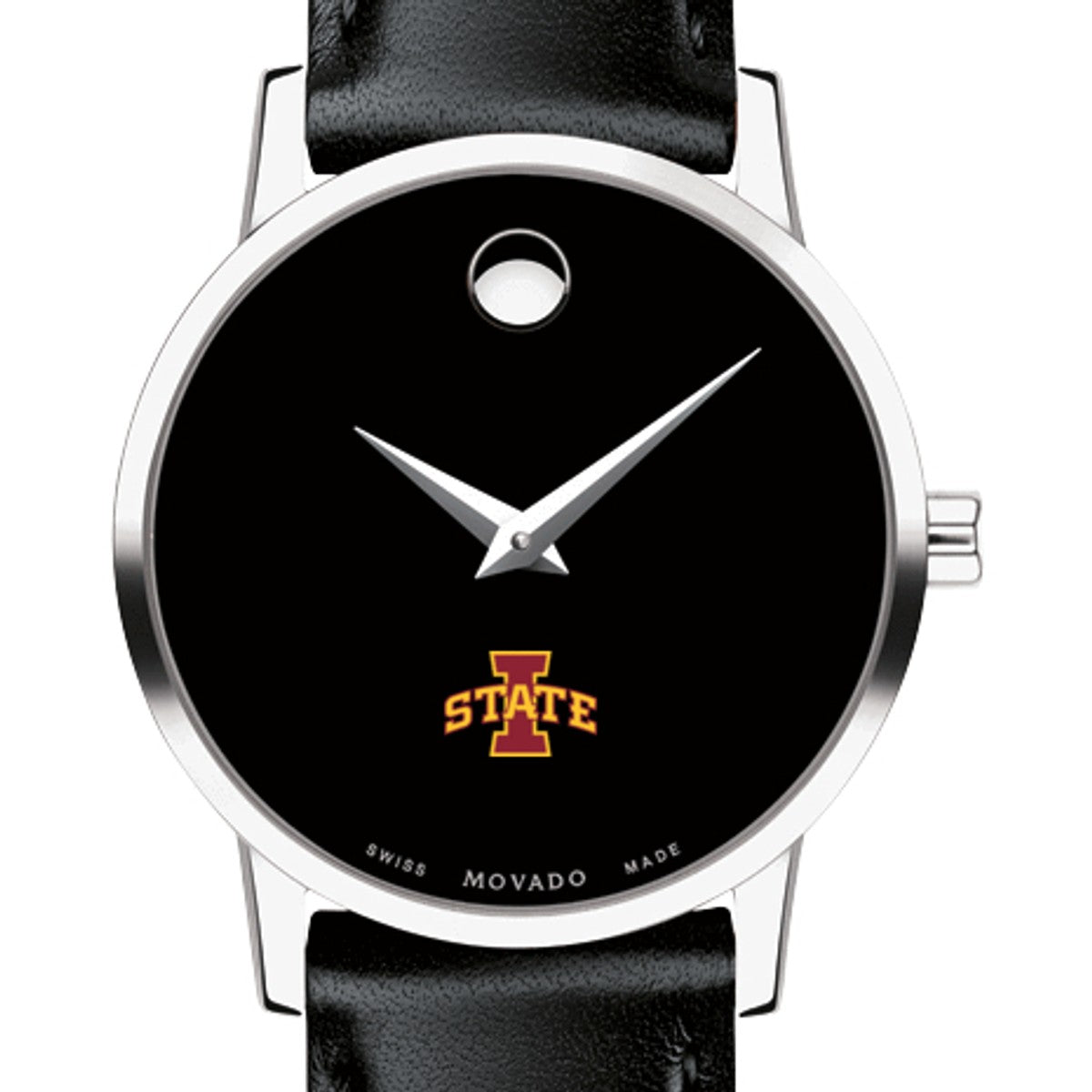 Iowa State University Women's Movado Museum watch features the Iowa State logo in full color at 6 o'clock on black dial. Created in 1947, the iconic concave dot symbolizes the sun at high-noon. Complimentary personal engraving.