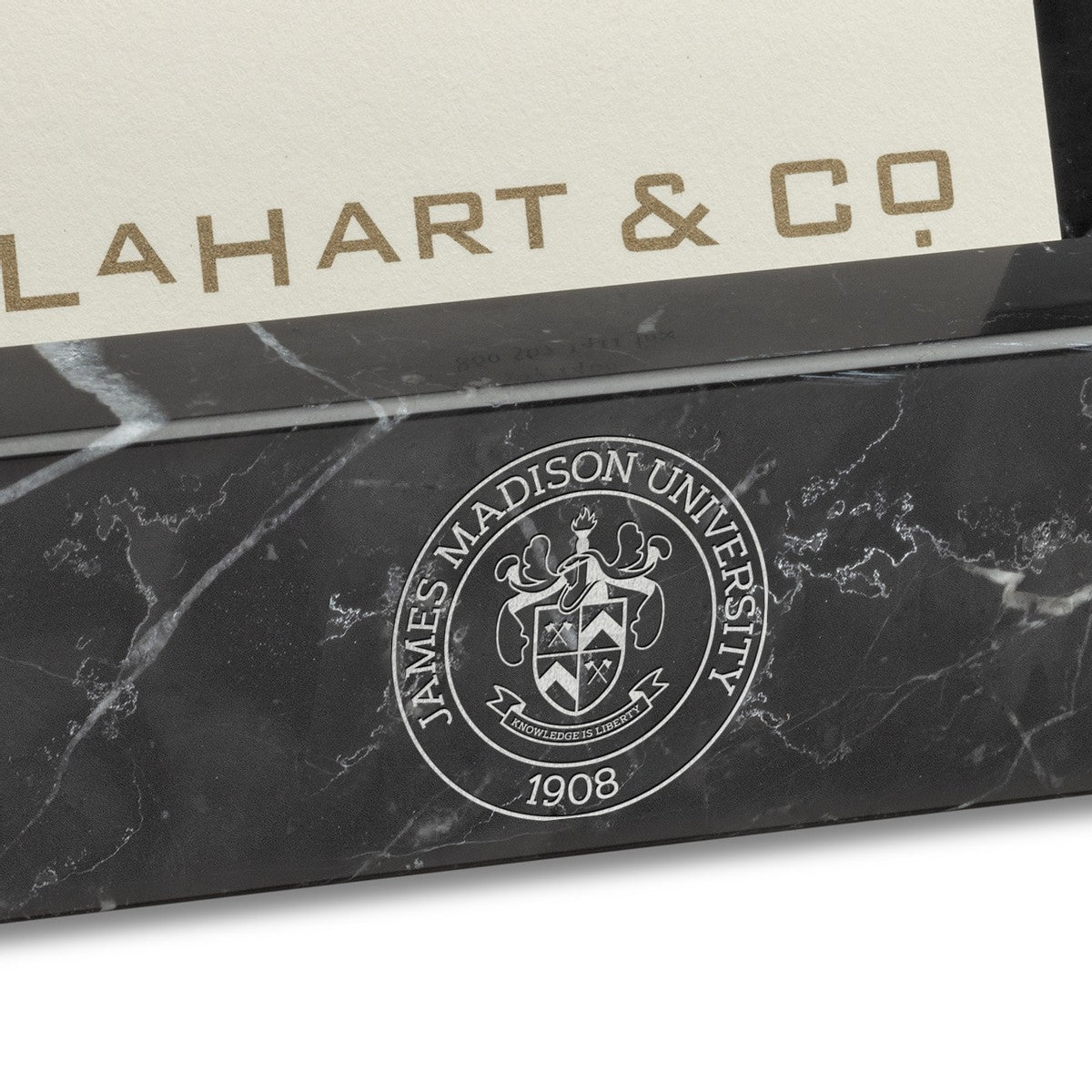 Perfect for new grads and seasoned professionals, the officially licensed James Madison University marble cardholder is an essential for the desk of James Madison fans. The James Madison Logo is elegantly featured on the front of this substantial, solid marble card holder and accommodates all standard size business cards.